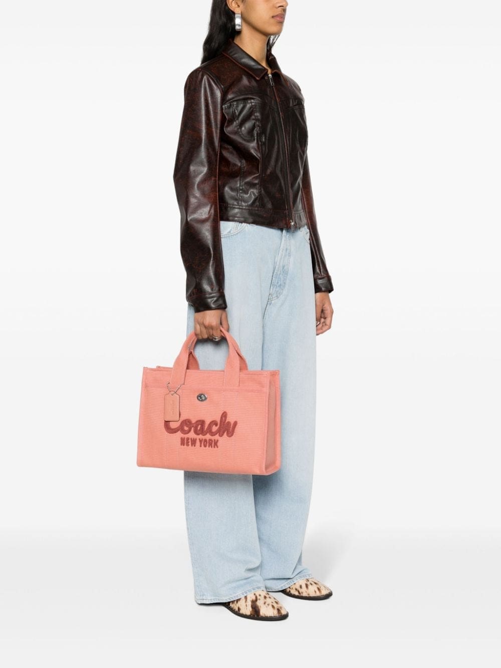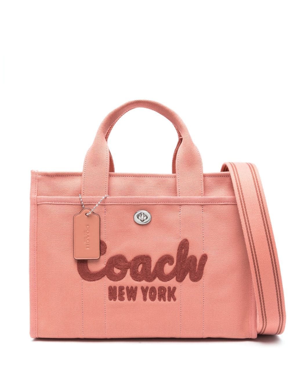 Coach’s Cargo tote is aptly named after its functional carryall silhouette. It’s made from durable pink canvas with a sizable main compartment and two exterior pockets for added storage. The brand’s moniker and New York headquarters are proudly embroidered at the front.
