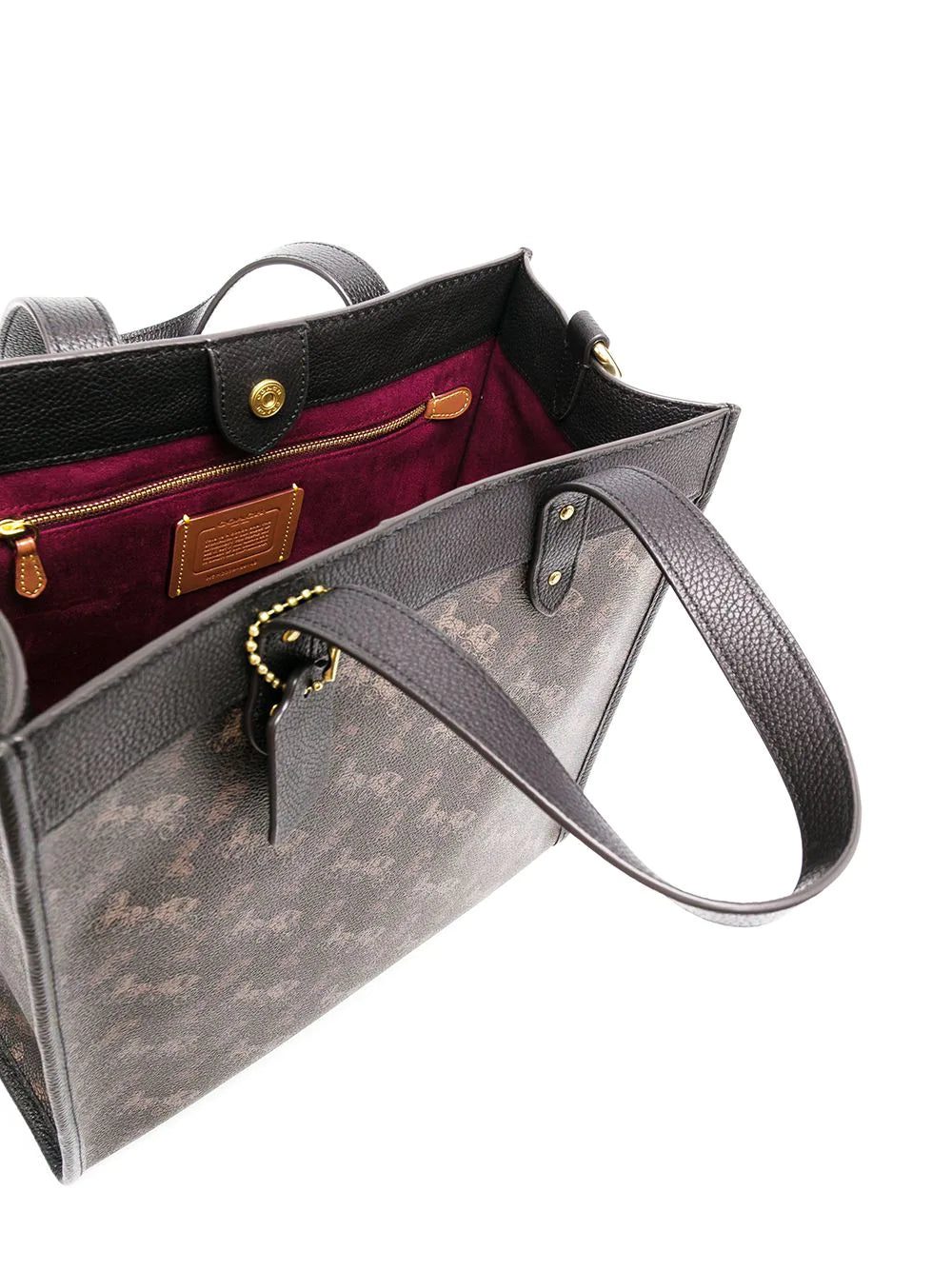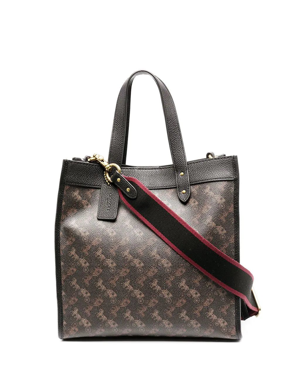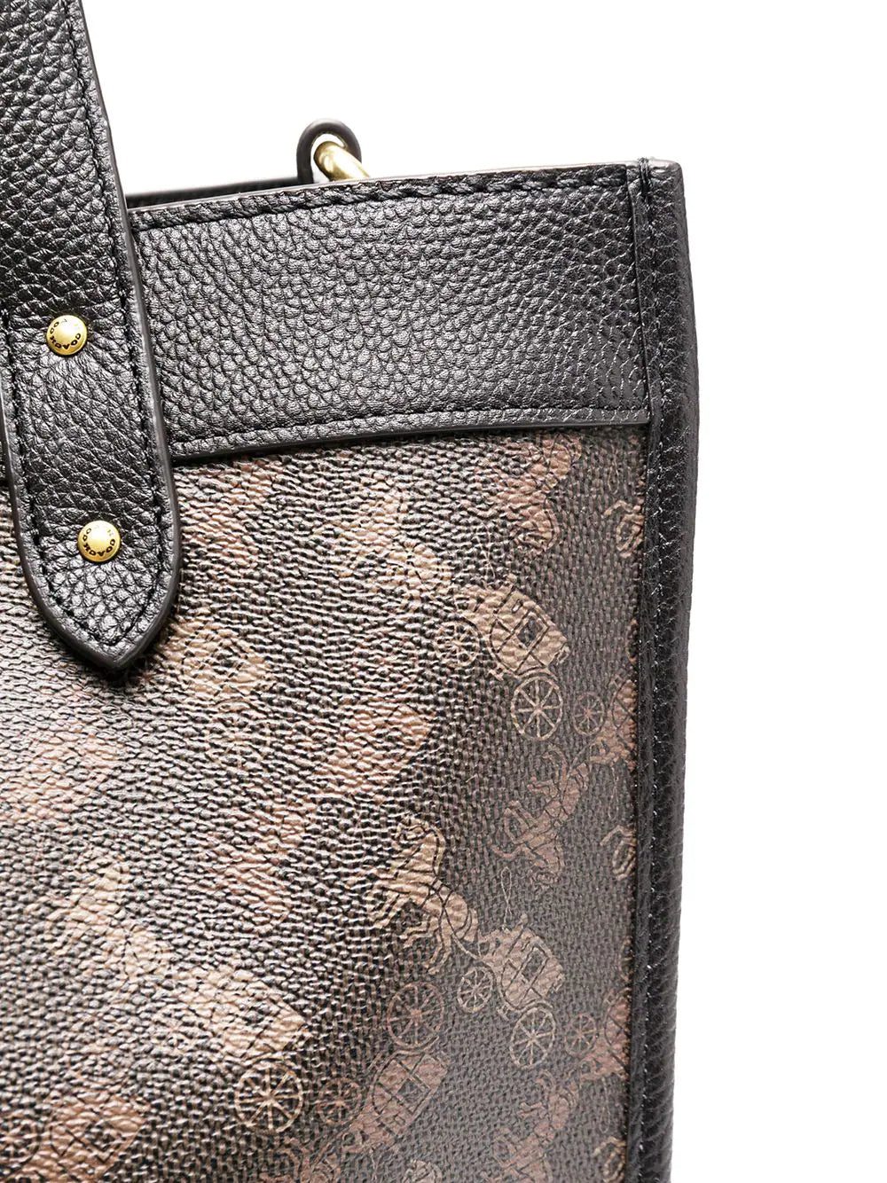A versatile design that nods to Coach's history. With a coated finish, the canvas panels on this Field tote are adorned with the brand's Horse and Carriage motif that showcases the brand's equestrian roots.