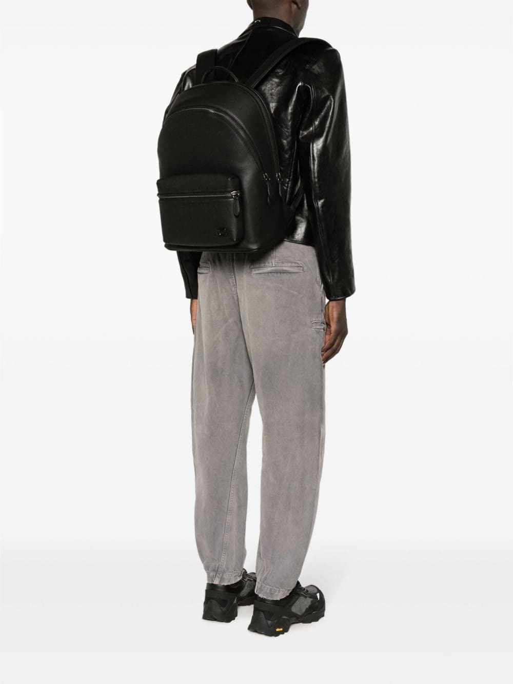 This Coach backpack is characterised by its clean lines and sleek grained-leather construction. It’s decorated with a tonal logo plaque and features a zipped main compartment with internal zip and slip pockets.