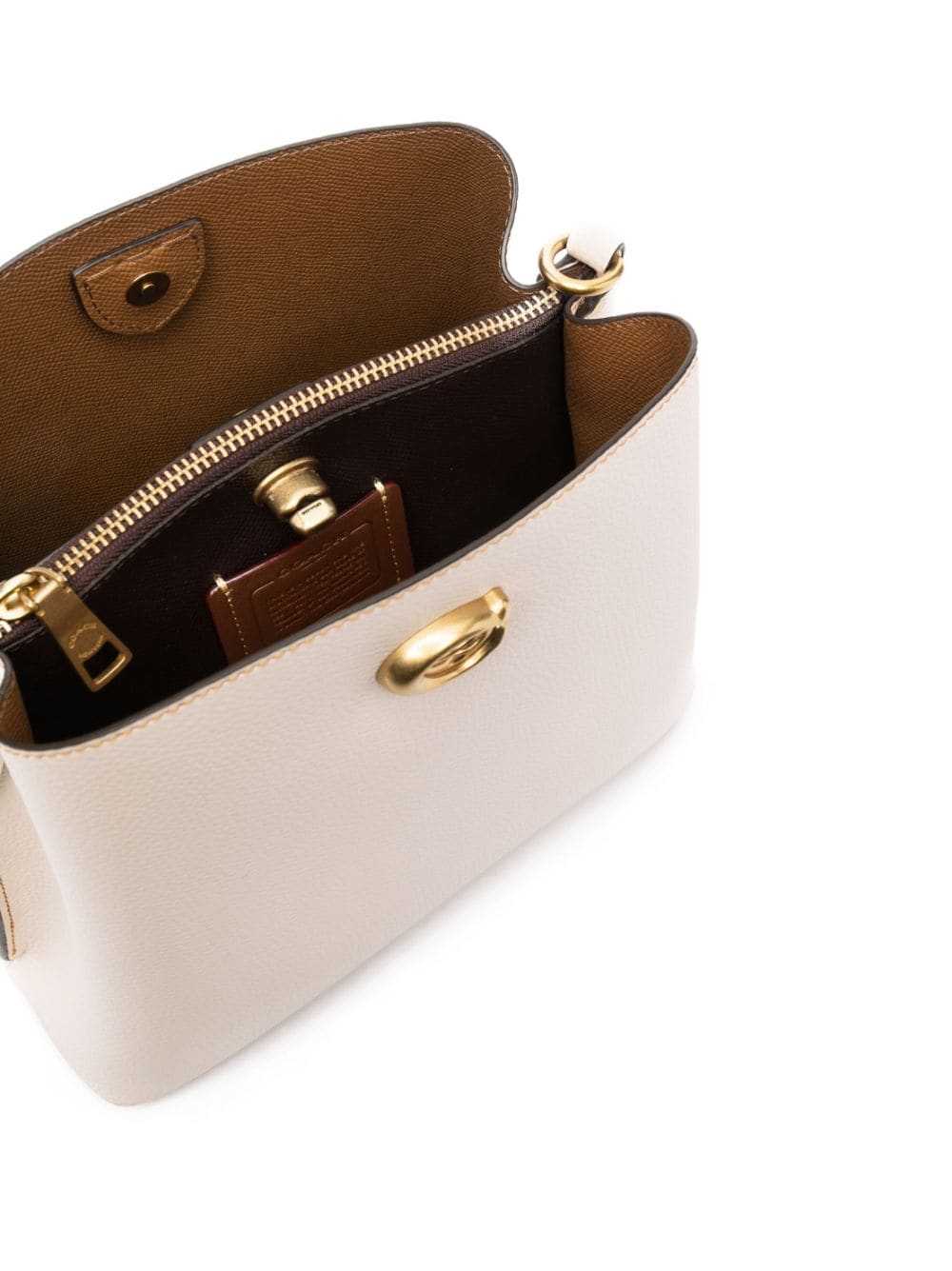 - gold-tone logo plaque