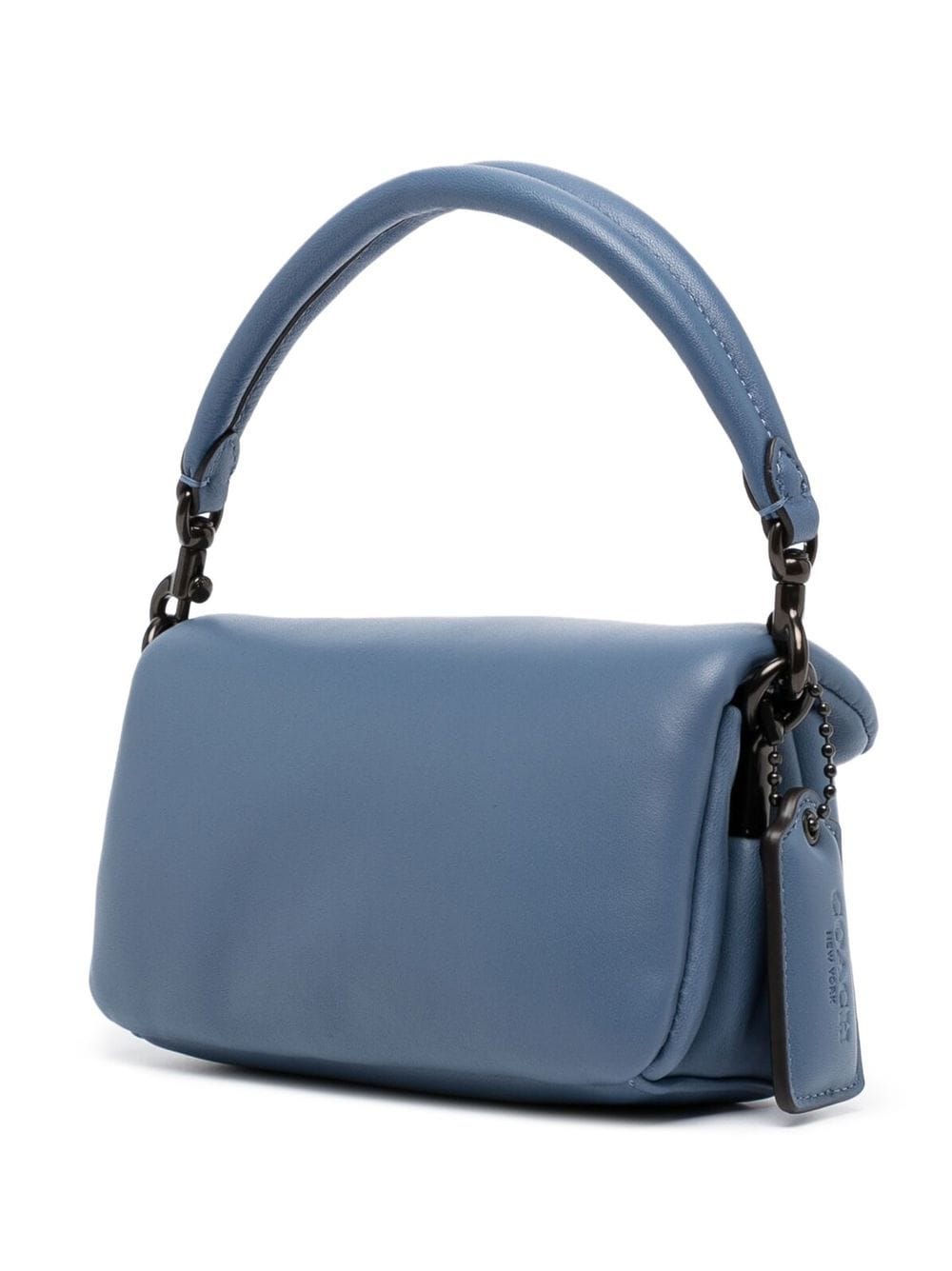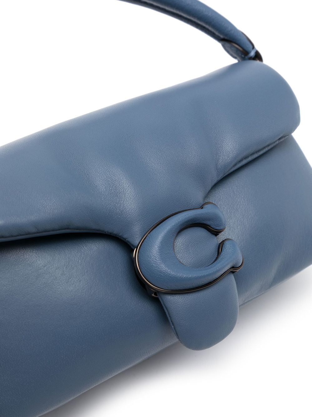 Reinventing Coach's 1970s archival silhouette, the Pillow Tabby shoulder bag is crafted from soft leather in a padded design. This steel blue iteration is presented for AW22 with a tonal logo plaque for a recognisable look.