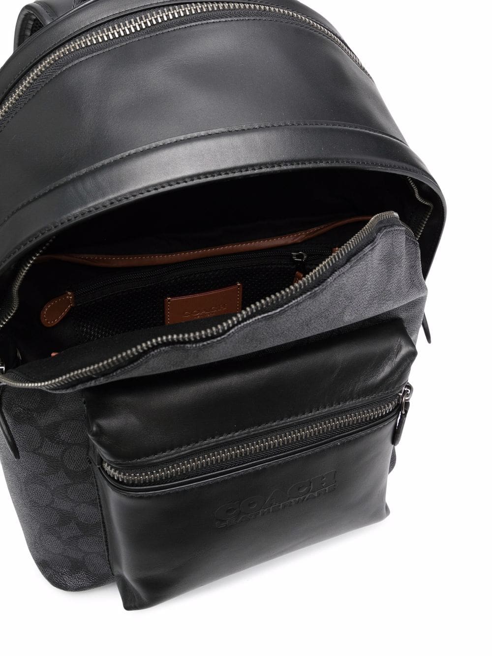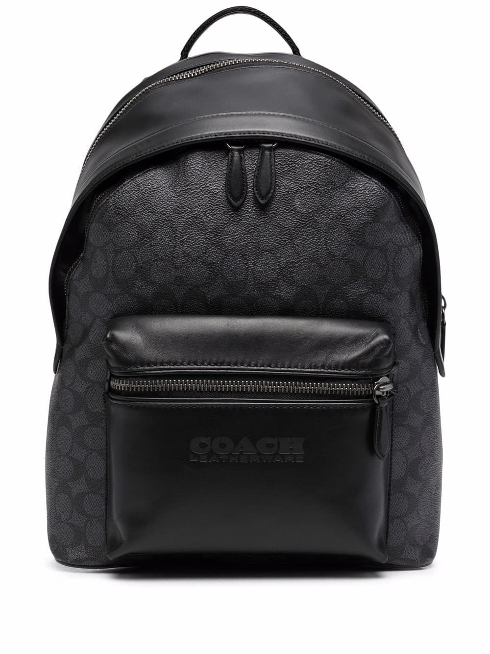 black calf leather monogram pattern front patch pocket front two-way zip fastening adjustable shoulder straps single rounded top handle