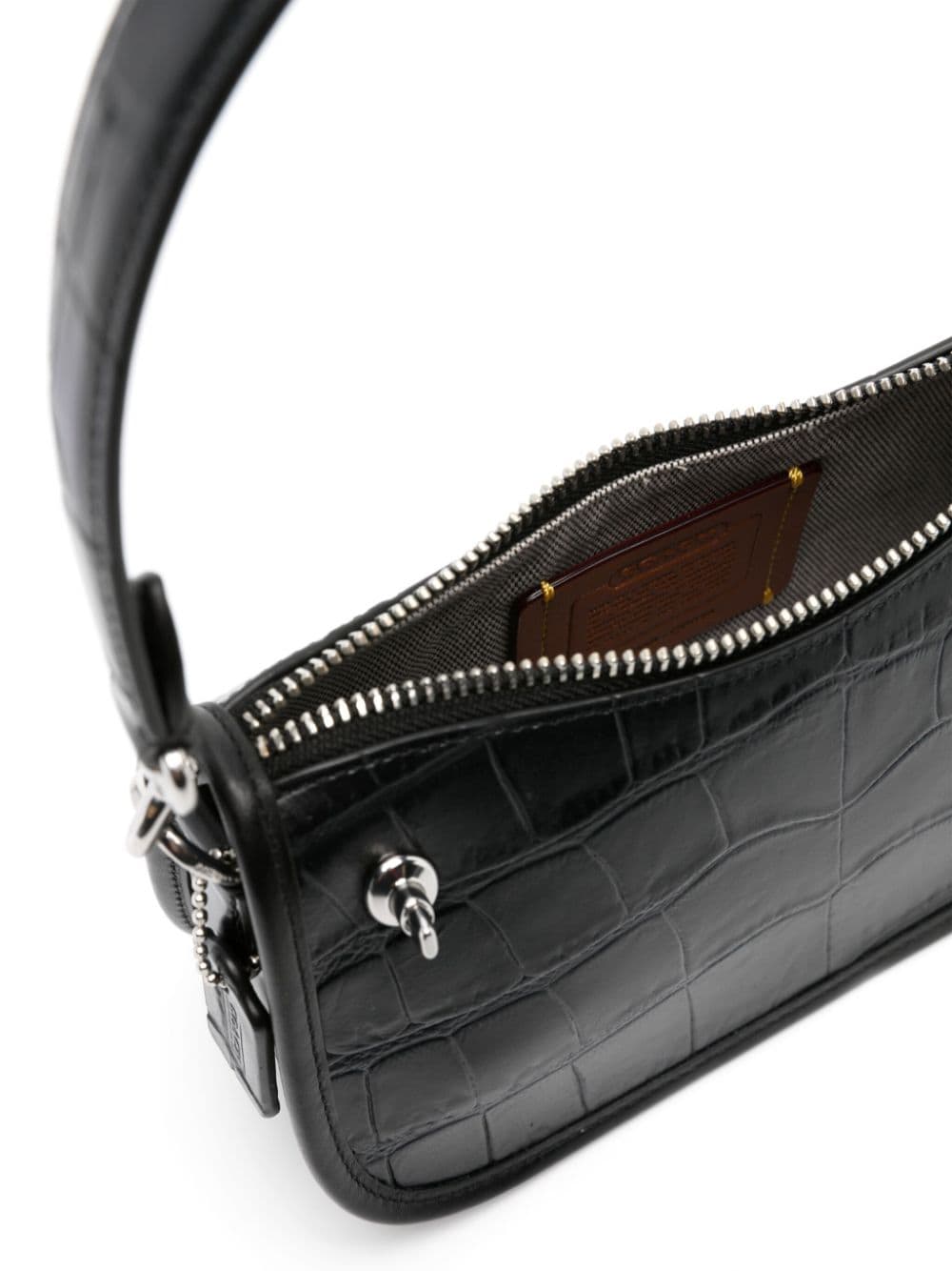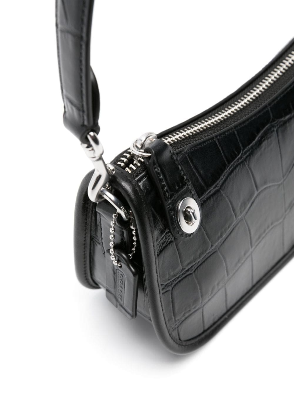 This black Swinger 20 shoulder bag hails from The Coach Originals collection – a curated selection of archival-inspired designs that celebrates the brand's legacy and authentic New York heritage. It’s crafted in crocodile-embossed leather with the iconic turn-lock fastening re-purposed as the zip pull.