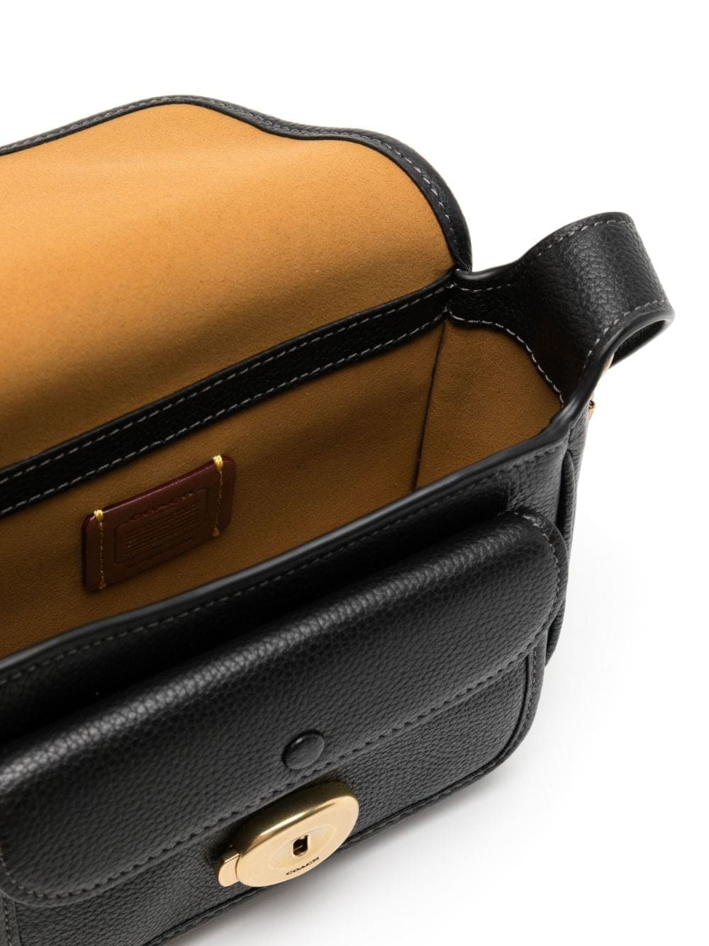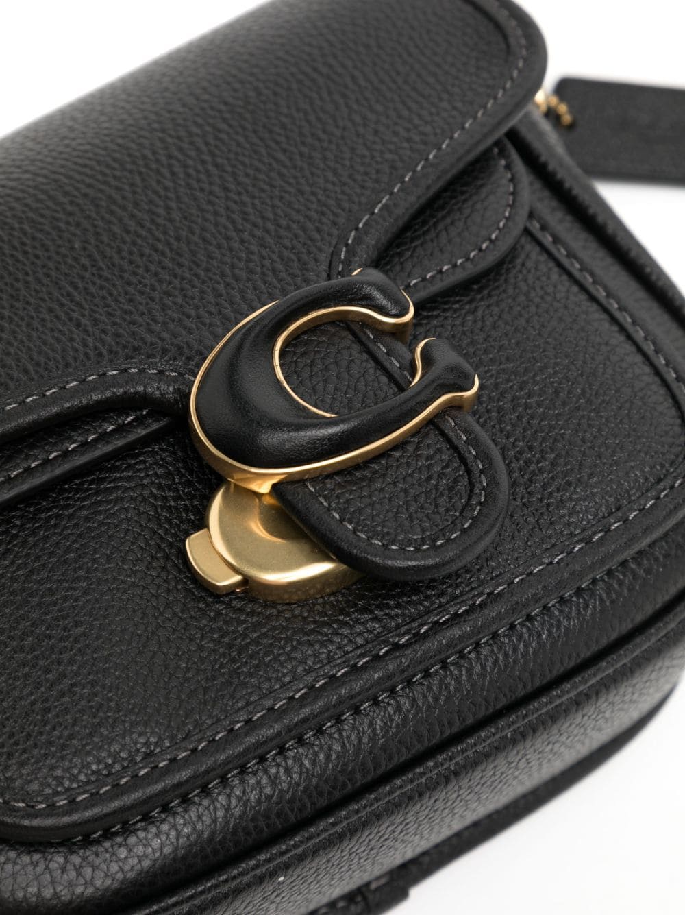 This iteration of Coach's 'Tabby Messenger 19' bag is delivered in timeless black. Its curved silhouette is adorned with the brand's iconic 'C' logo plaque on its front, whilst an adjustable strap allows for comfortable wear.