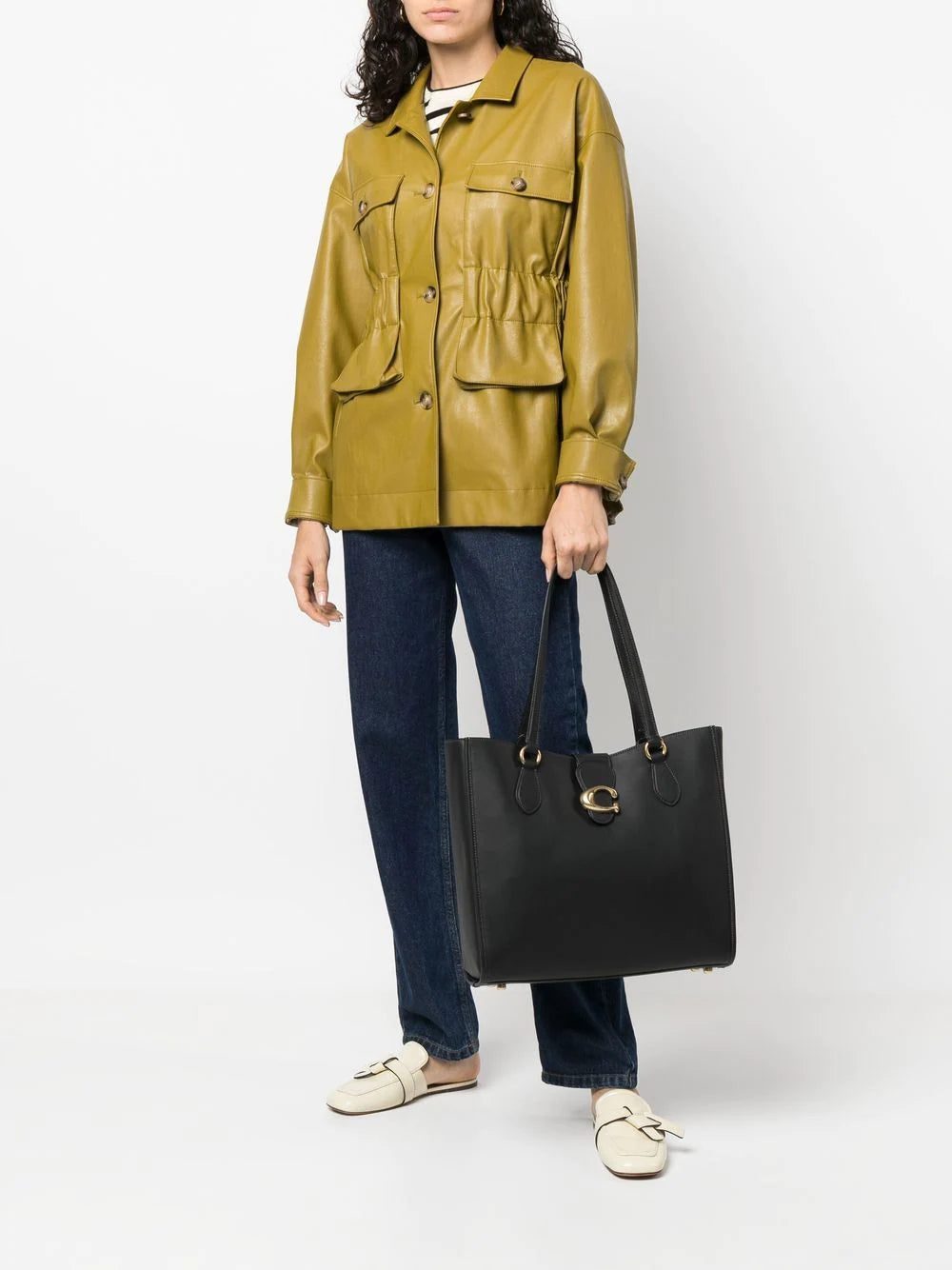 An iconic style of Coach, the Theo tote bag is characterised by its spacious body and minimalist design. Crafted from smooth calfskin, this black iteration is simply finished with a signature C emblem to the front.