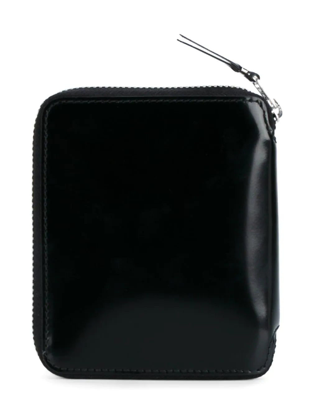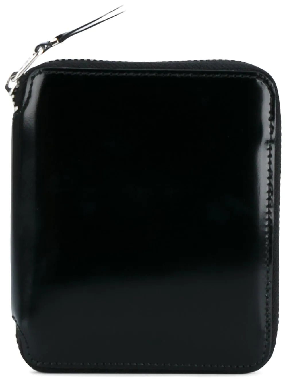 Black leather zip around wallet from Comme Des Garçons Wallet featuring a zip fastening, multiple interior card slots and an internal logo stamp. This item is unisex.
