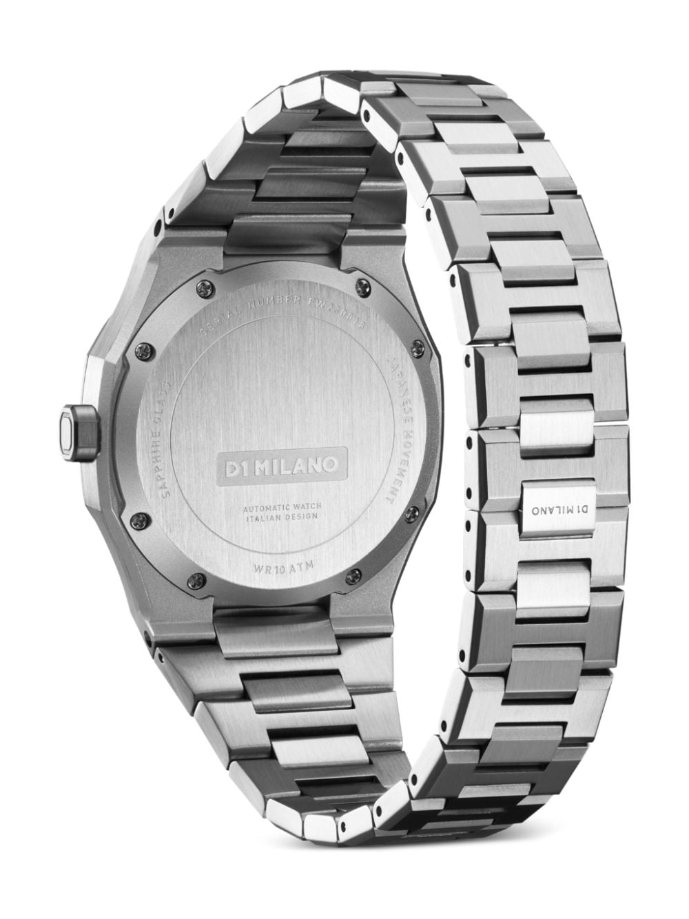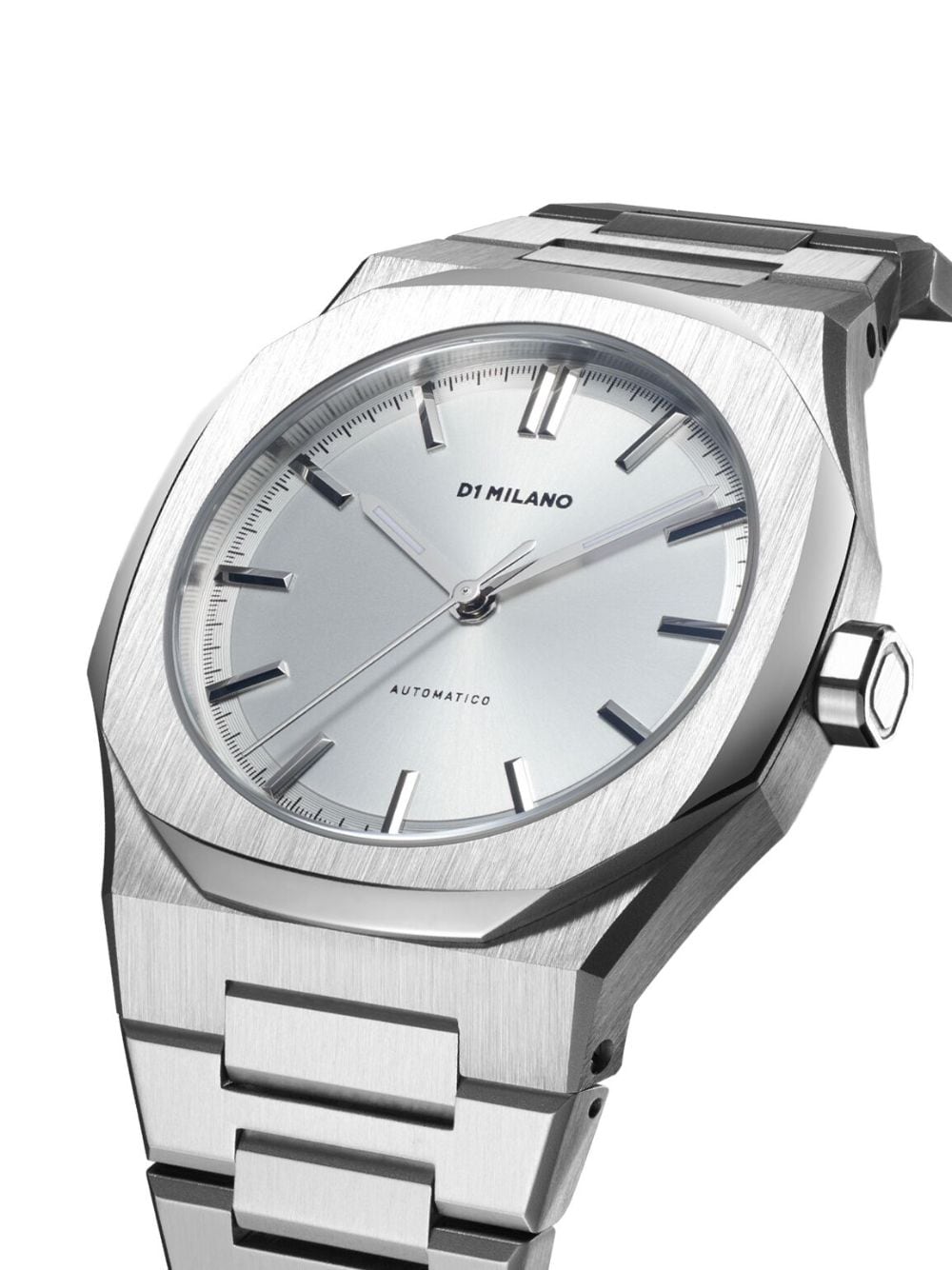 D1 Milano says its Automatico 36mm is ‘crafted for those who appreciate the fusion of timeless elegance and modern sensibilities.’ It’s made from stainless steel with a shimmering sunray index dial and brushed octagonal bezel to match the shape of the crown. It’s powered by a Miyota 9039 automatic movement and protected with an anti-reflective sapphire crystal glass face.