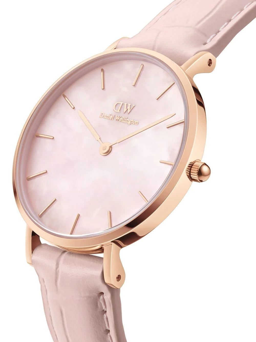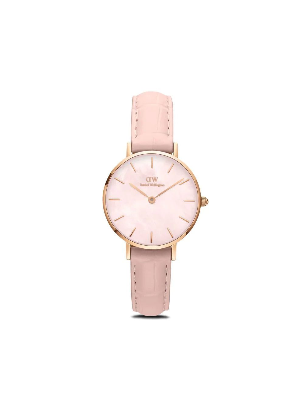 Petite Rouge 28mm from Daniel Wellington featuring rose gold, pink, leather, stainless steel, stick hands, quartz movement, round face, leather strap and pin-buckle fastening.