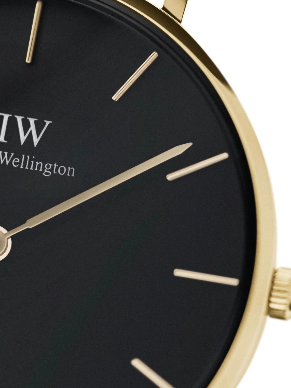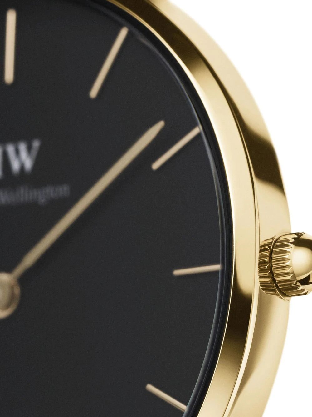 Petite St Mawes 32mm from Daniel Wellington featuring gold-tone, black, leather, stainless steel, stick hands, quartz movement, round face, leather strap and pin-buckle fastening.