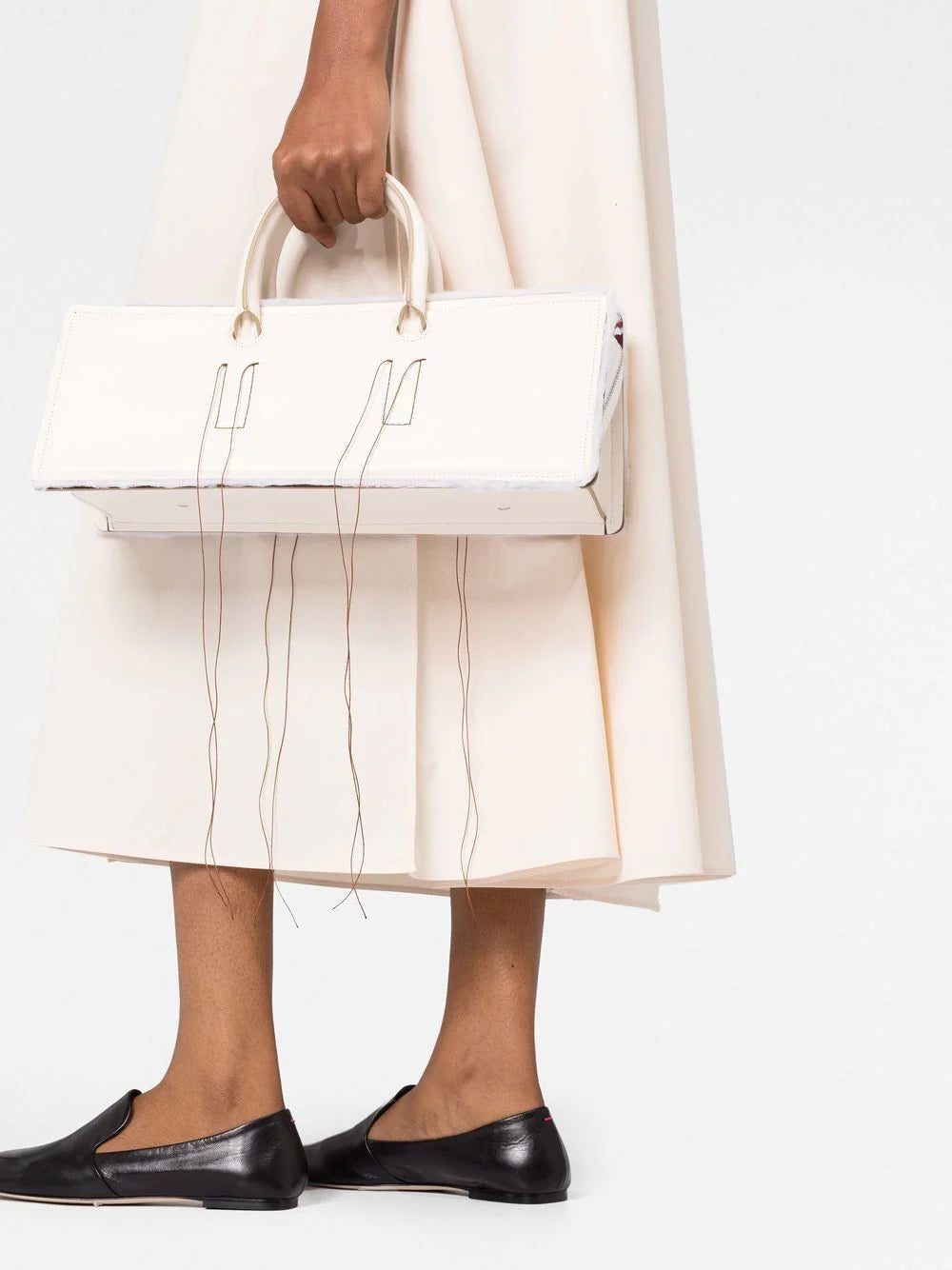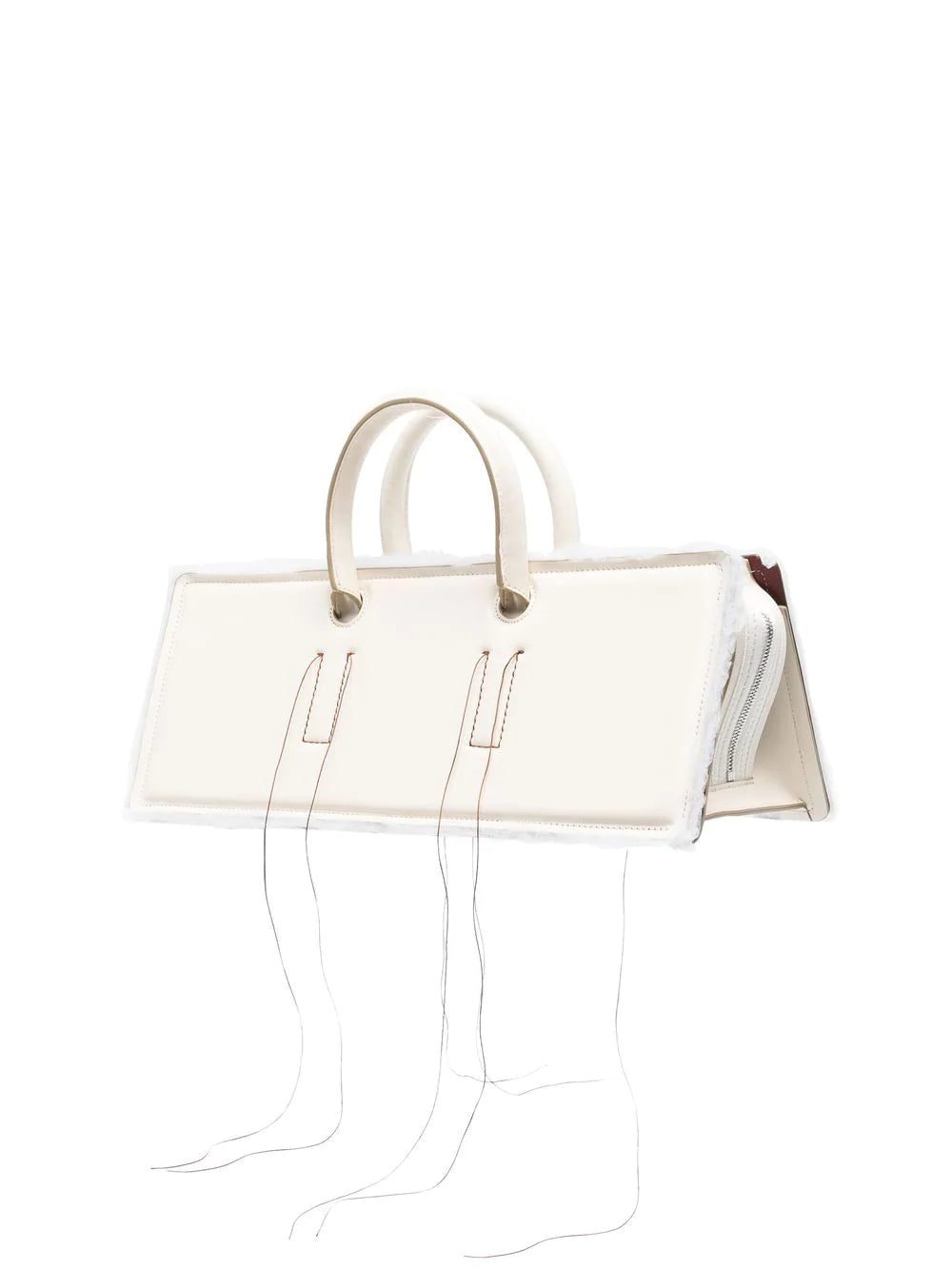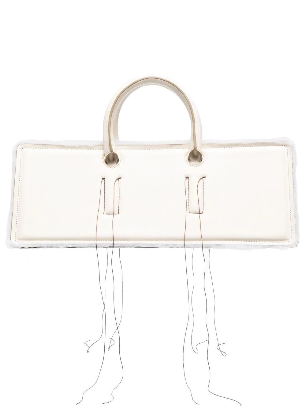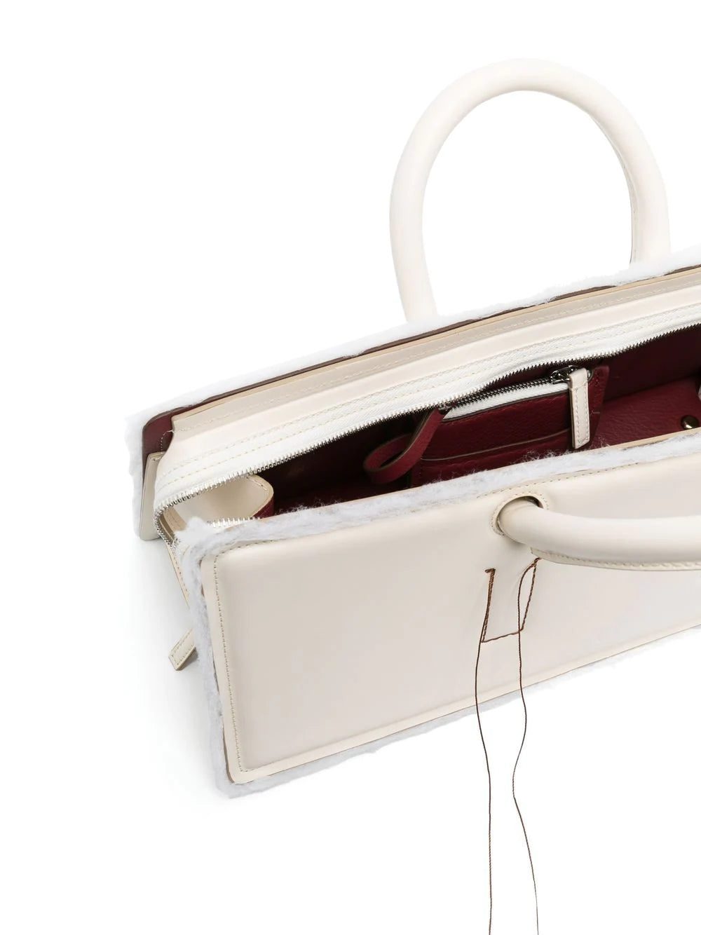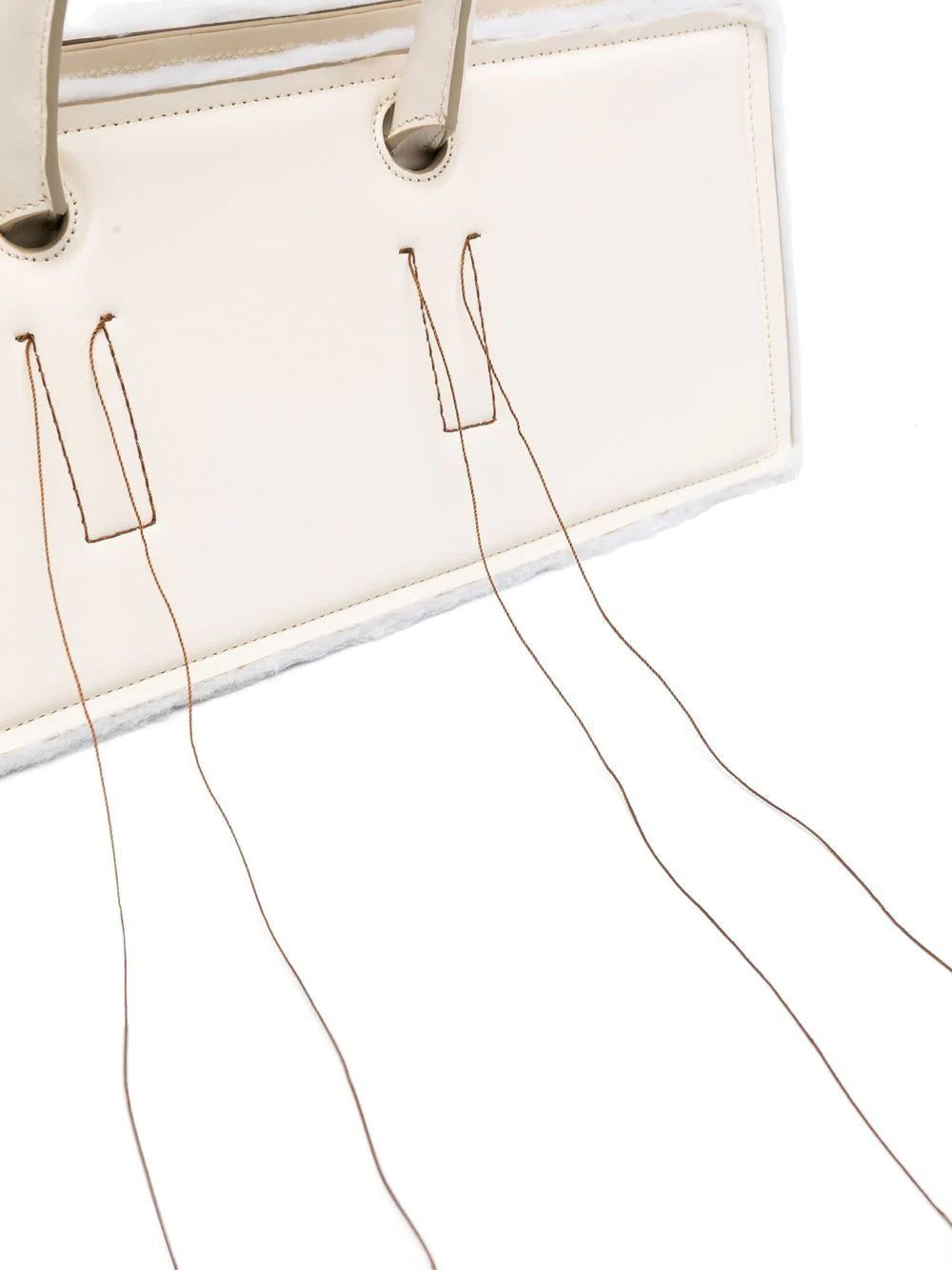Otto Leather Tote Bag from DENTRO featuring cream white, calf leather, exposed-seam detailing, circular top handles, main compartment, top zip fastening and raw-cut edge.