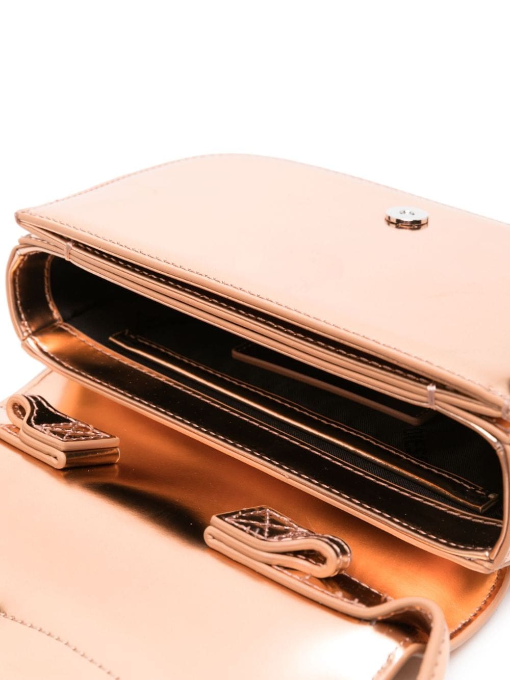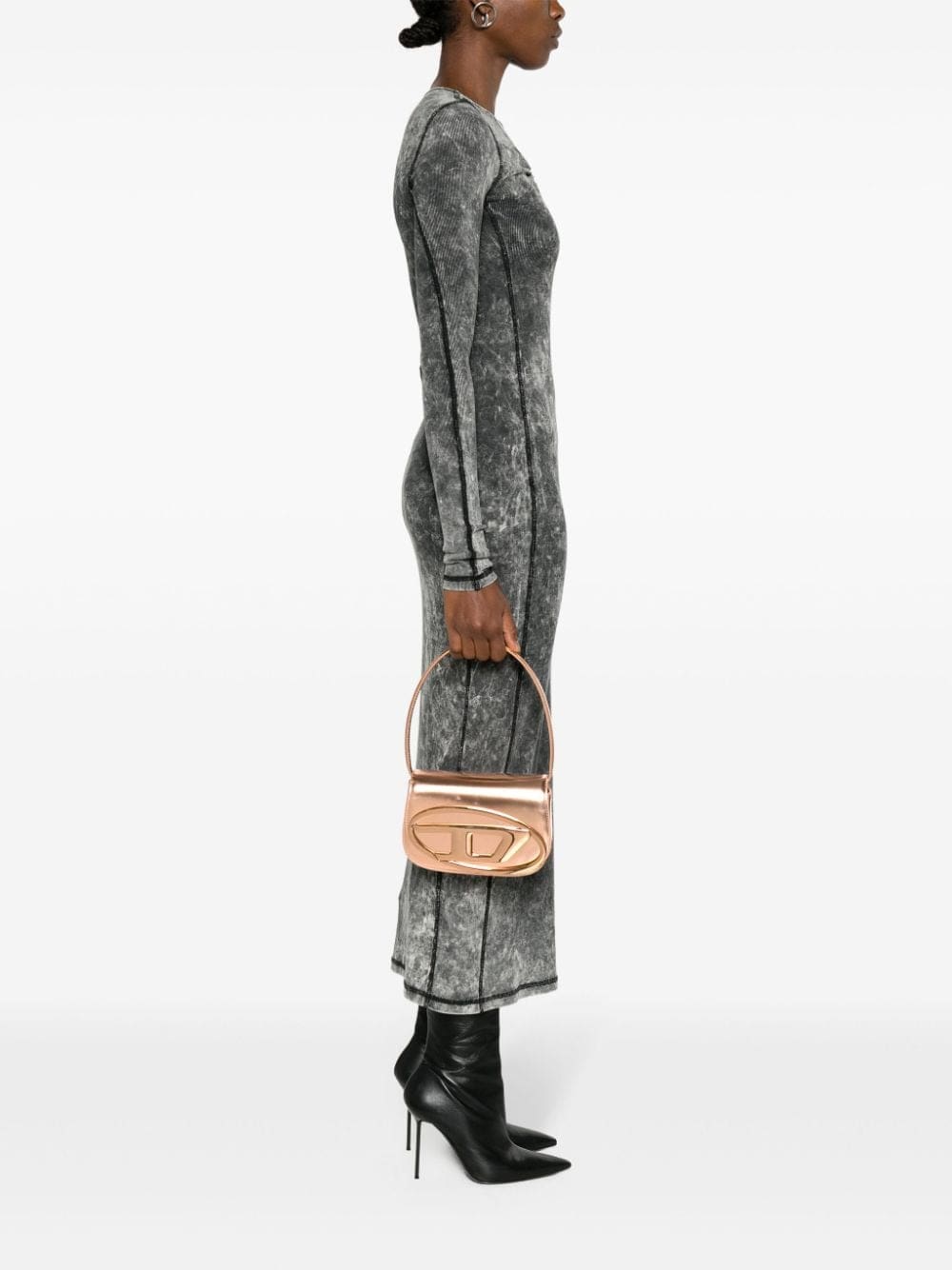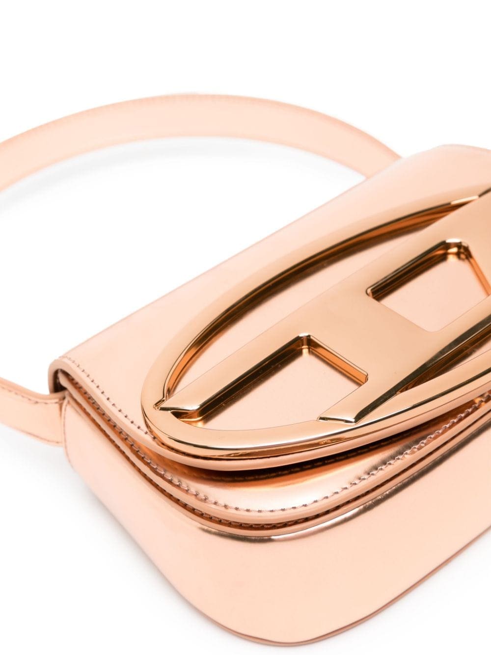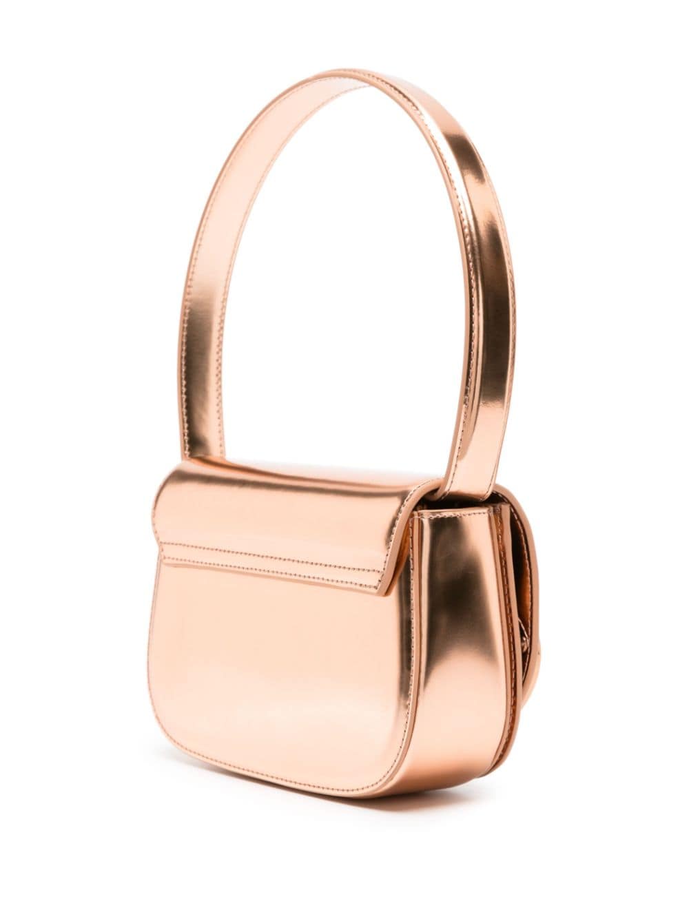 The 1DR shoulder bag is an iconic Diesel accessory. This iteration is crafted from leather with a mirror-like metallic finish and accented with a rose gold-tone logo plaque at the front.