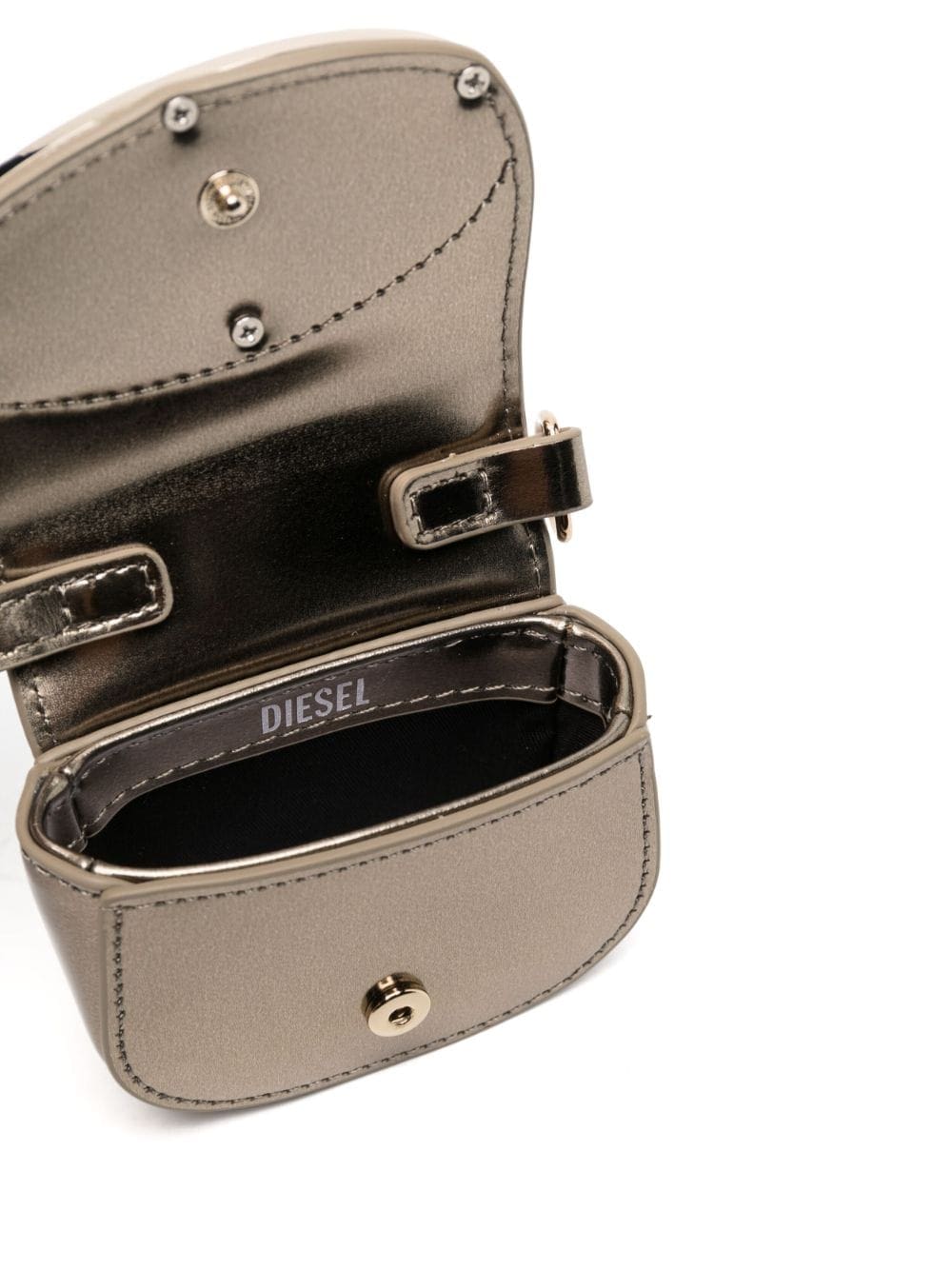 - gold-tone logo plaque