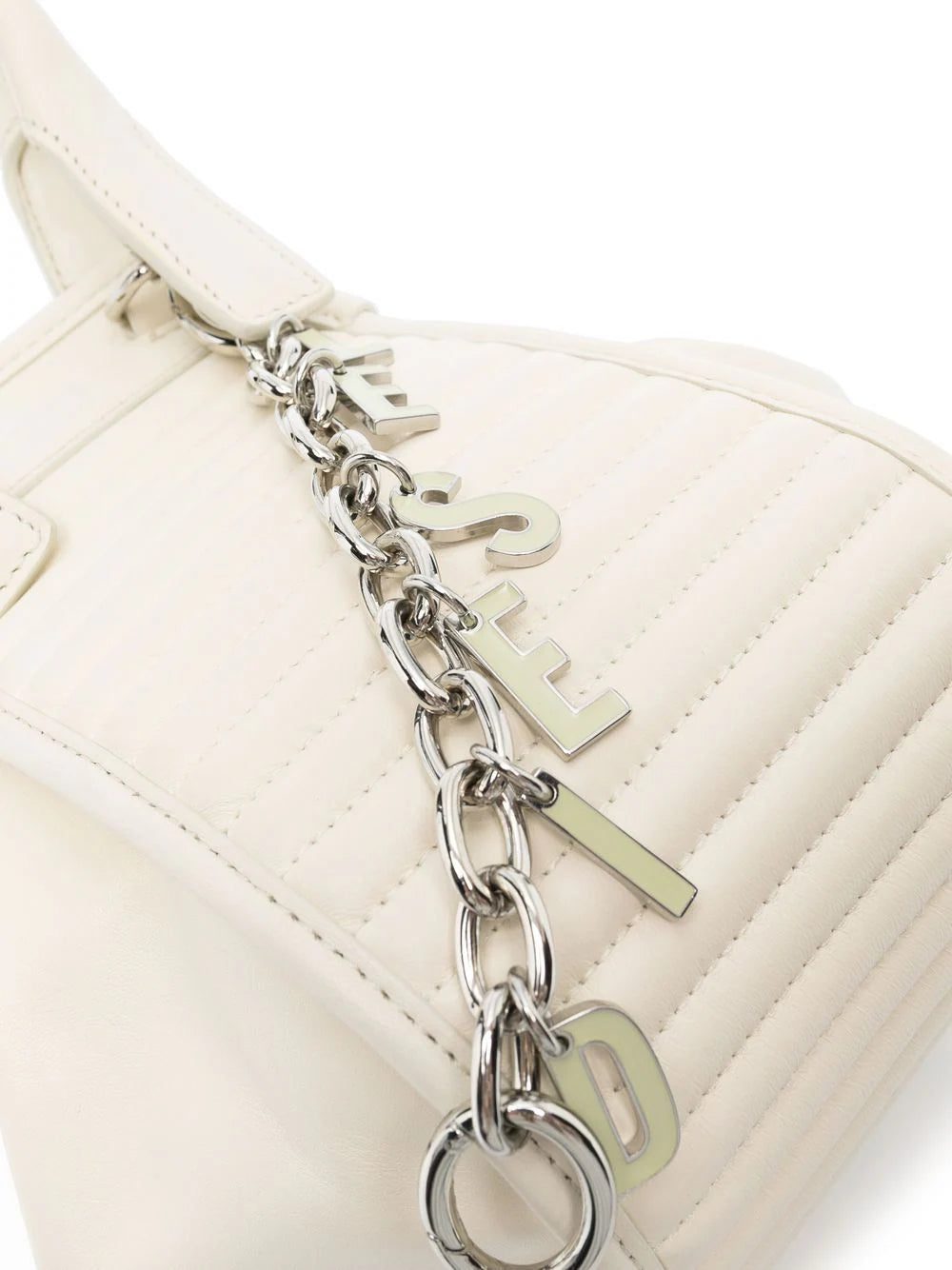 This D-Vina tote bag is emblematic of Diesel’s statement aesthetic. Sporting a geometric silhouette, the white leather construction plays host to a quilted panel and chain-link detailing adorned with logo charm embellishments.