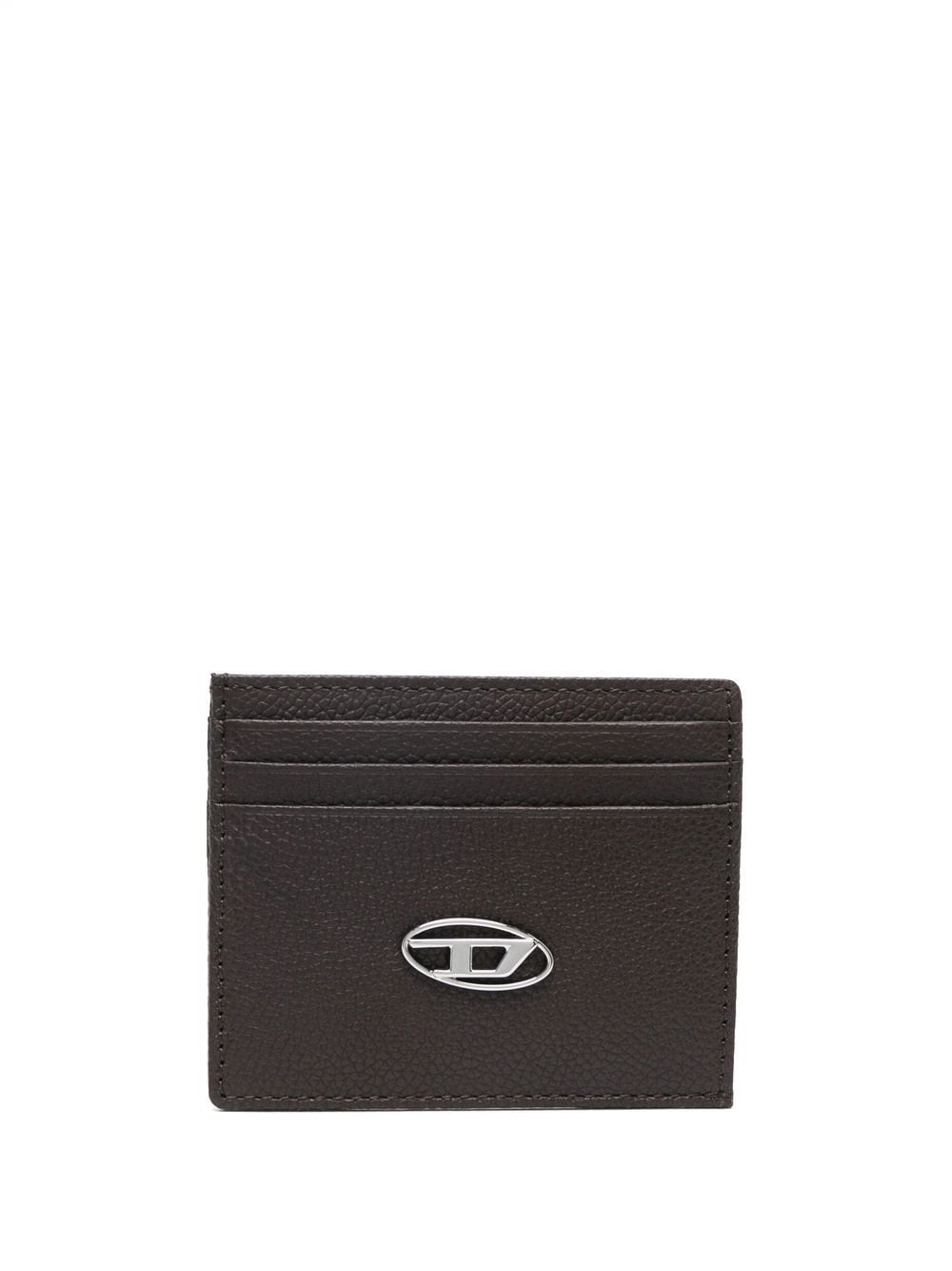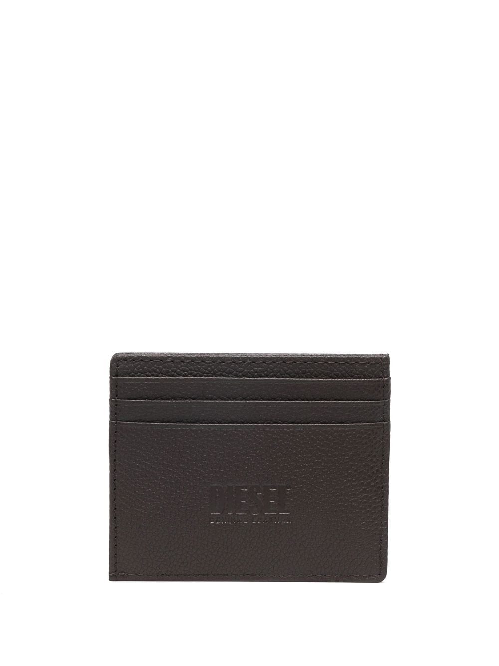 logo-plaque leather cardholder from DIESEL featuring brown, calf leather, textured finish, logo plaque, card slots and note compartment.