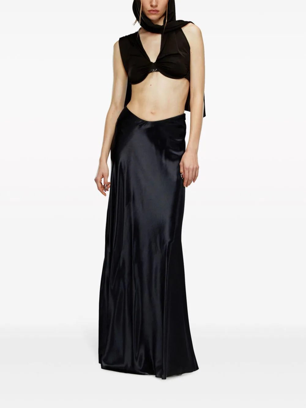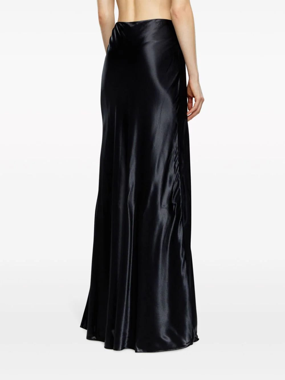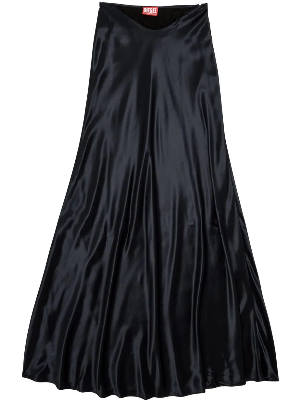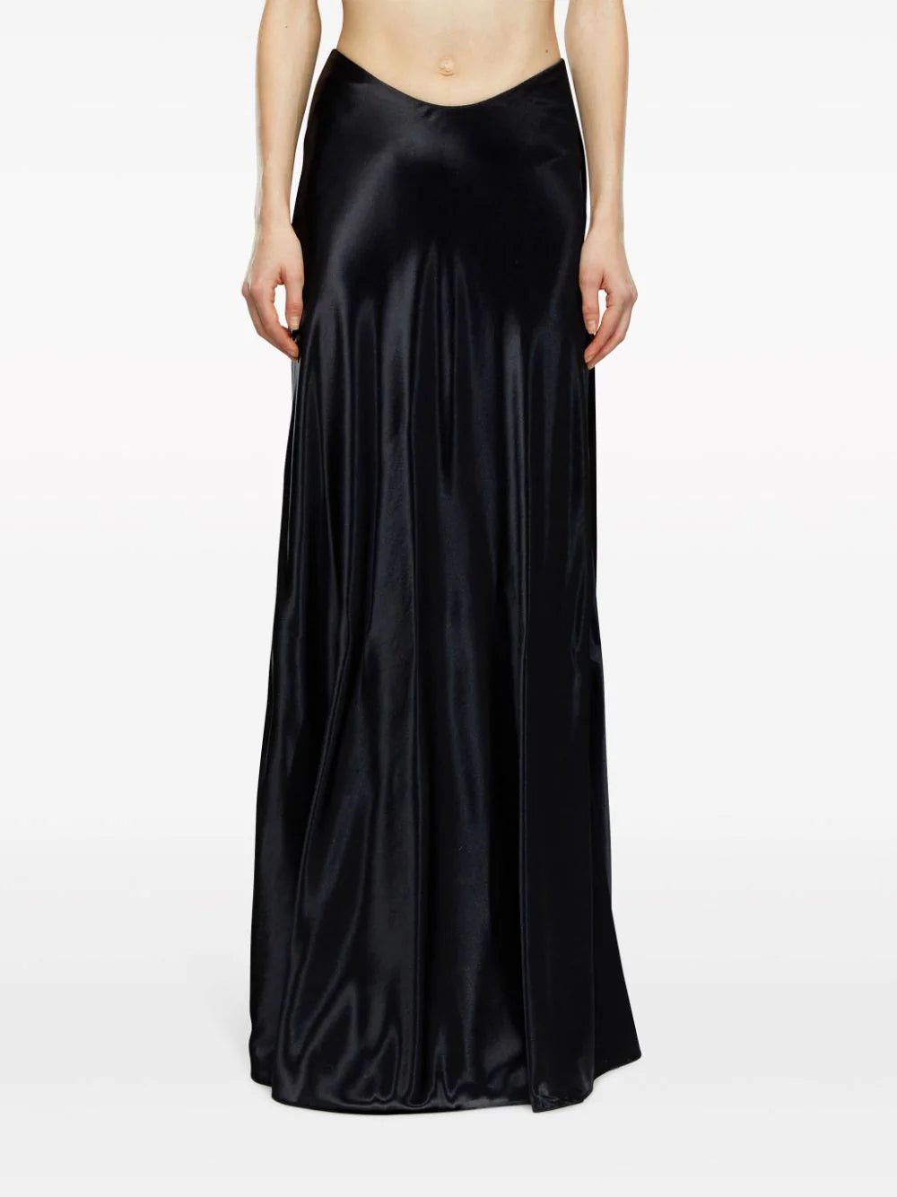 Boasting a flowing satin construction, the O-Syren skirt from Diesel is dipped at the front of the waist. Falling to a maxi silhouette, it's rendered in black for SS24.
