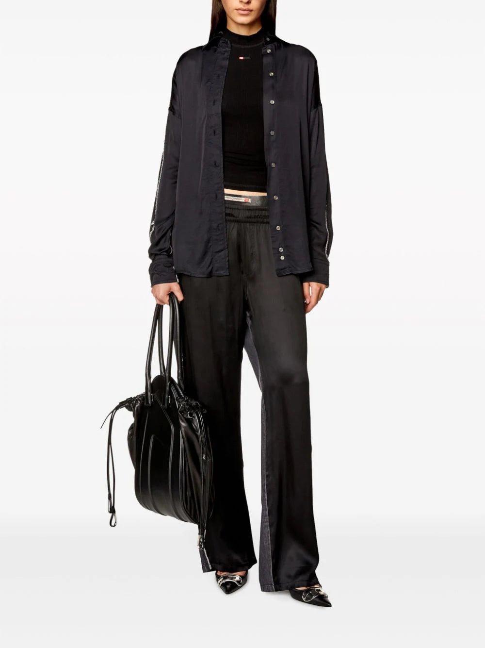 Diesel showcases its innovative style through these loose-fitting P-Fern-Dnm trousers. Their hybrid design combines a satin front with a tonal denim back, while a drawstring waistband adds a casual touch.