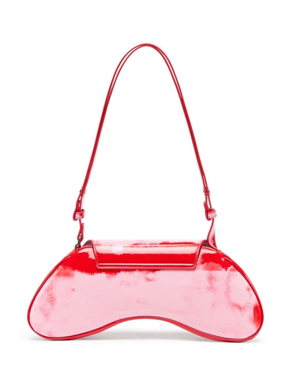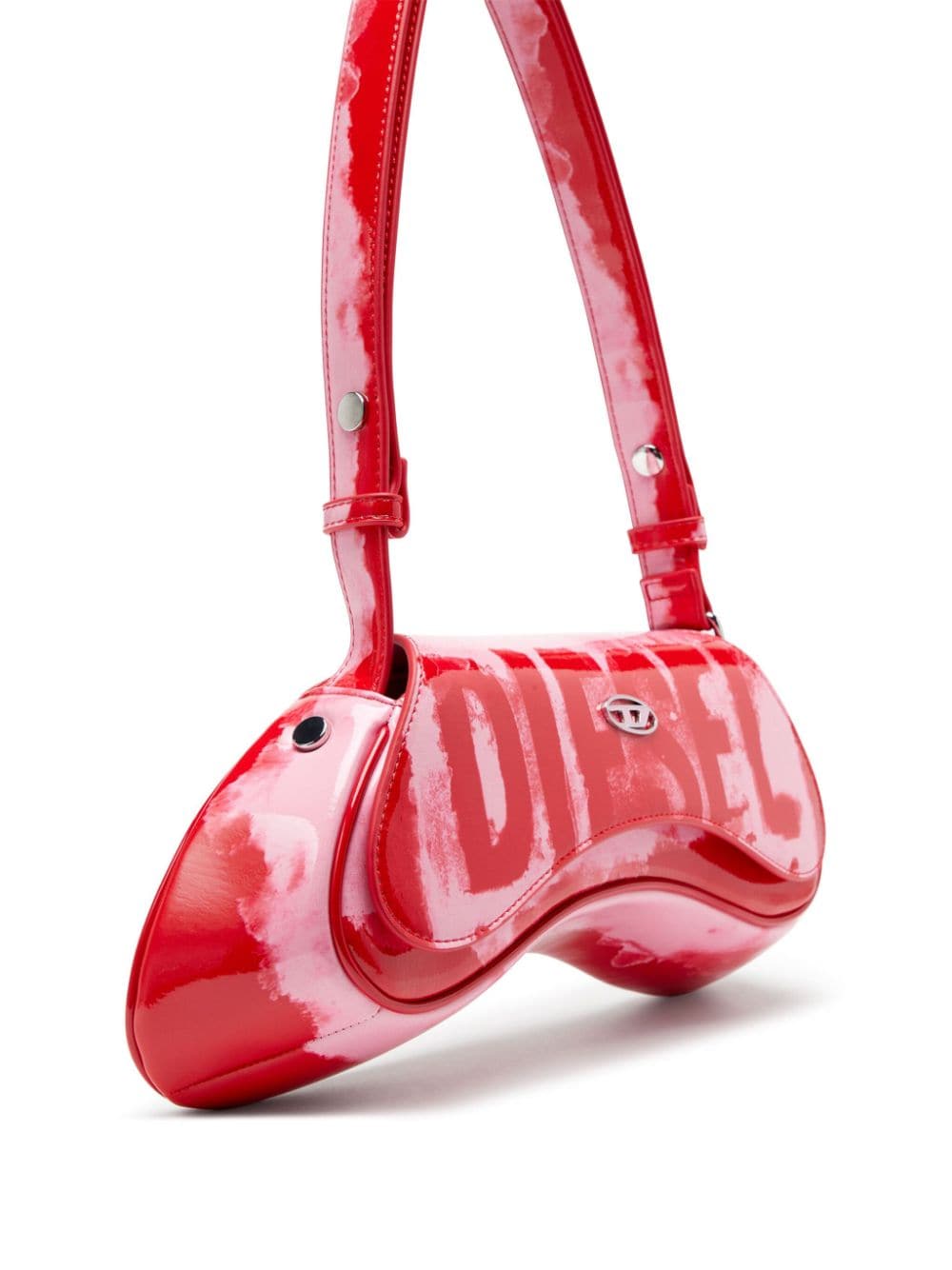 Sculpted to a silhouette inspired by videogame controllers, the Play bag speaks to Diesel's tongue-in-cheek take on accessories. This vibrant pink and red iteration features a distressed logo motif and silver-tone Oval D plaque.