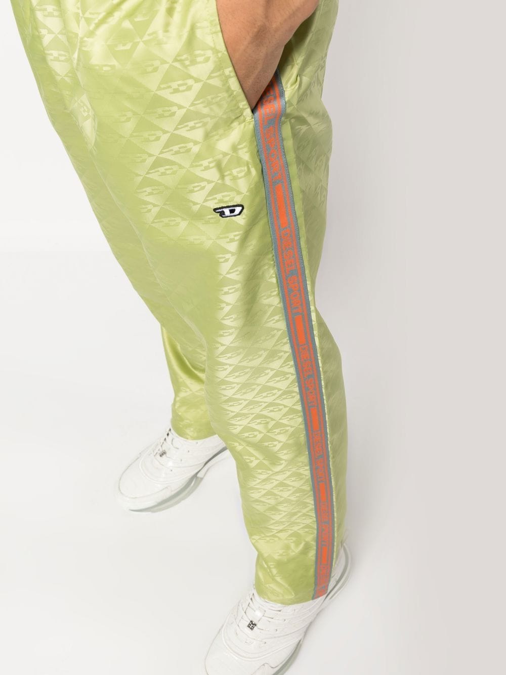 straight-leg performance trousers from DIESEL featuring bright green, all-over graphic print, elasticated waistband and straight leg.