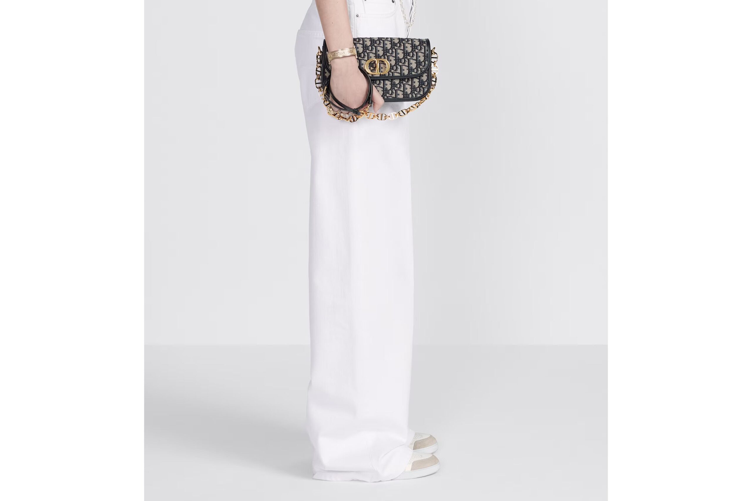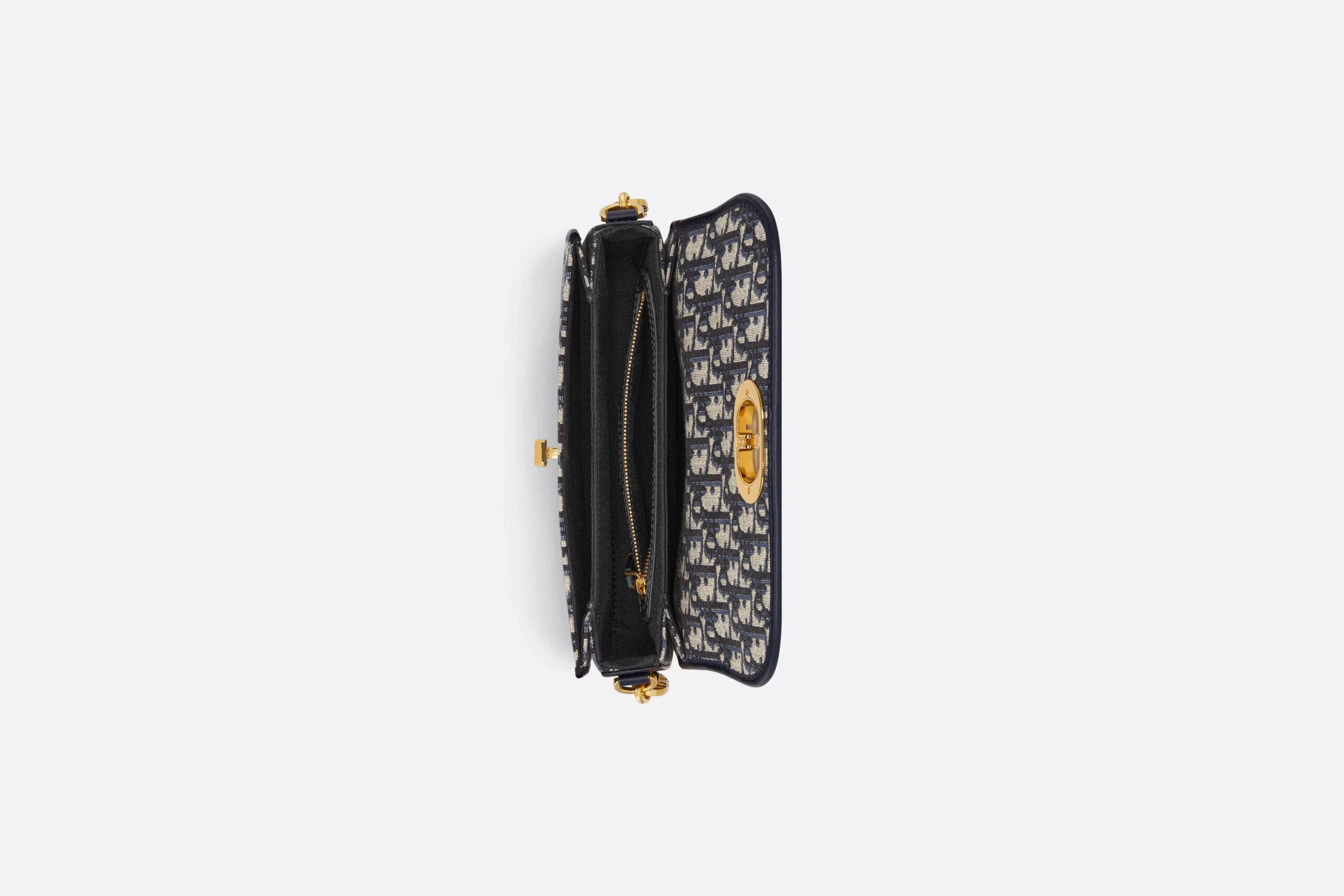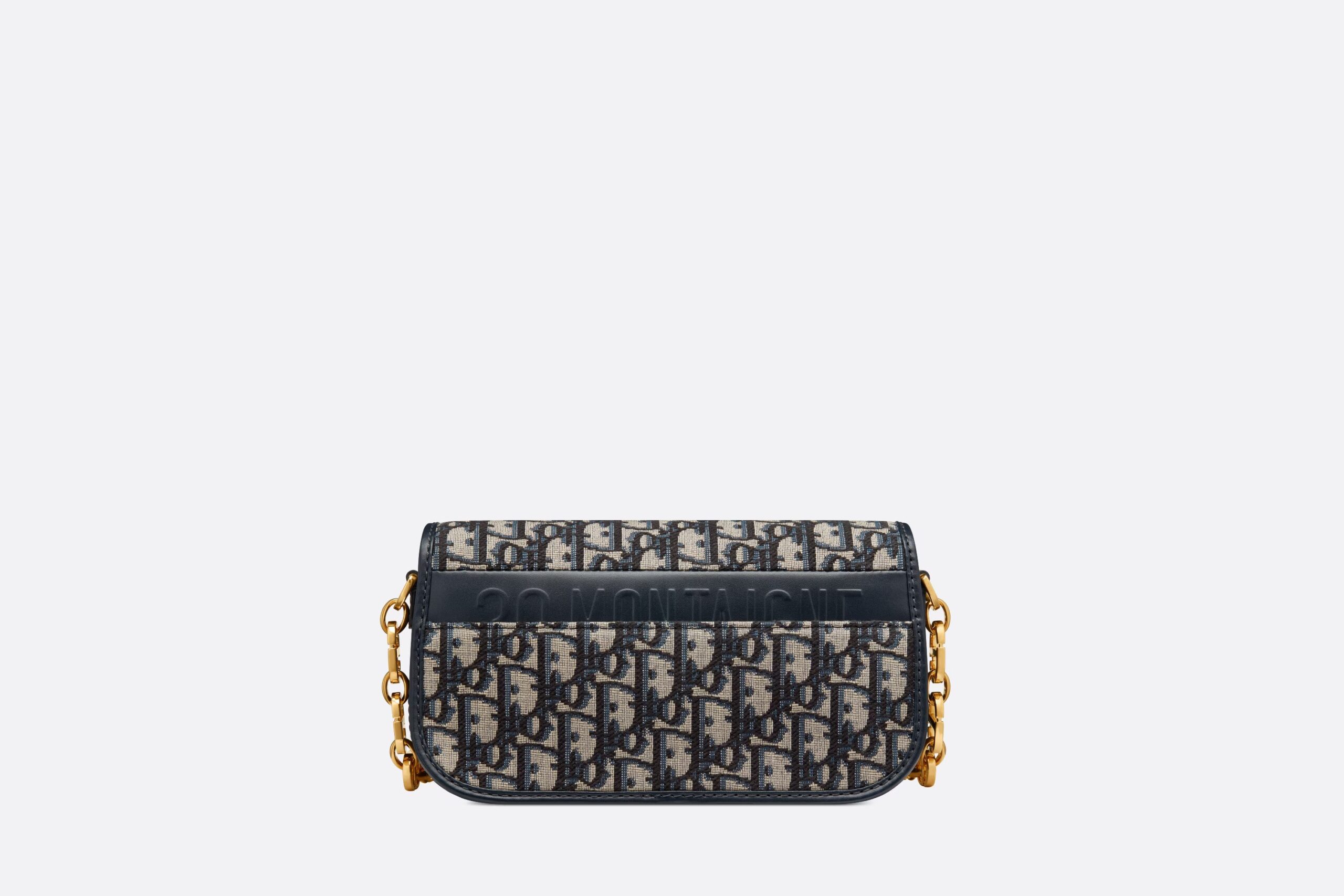 The 30 Montaigne Avenue bag enhances the hallmark line with a timeless and elegant style. Crafted in blue Dior Oblique jacquard, the rounded flap with delicate curves is punctuated by an antique gold-finish metal CD clasp inspired by the seal of a Christian Dior perfume bottle. The design is completed by other details, like the 30 Montaigne signature embossed on the back and the signature chain alternating gold-finish metal and tonal enamel links that match the leather. The gusseted bag features a spacious and refined silhouette that can be carried by hand, worn over the shoulder or crossbody.