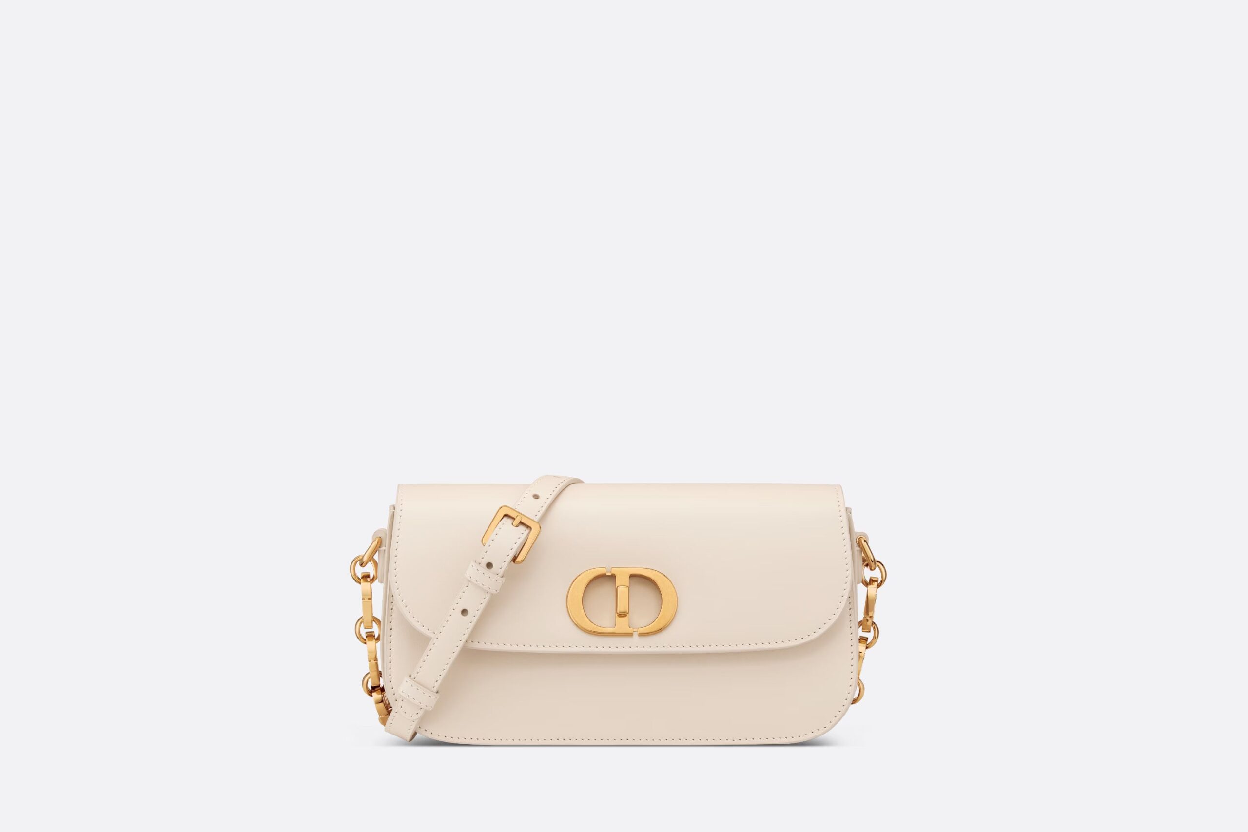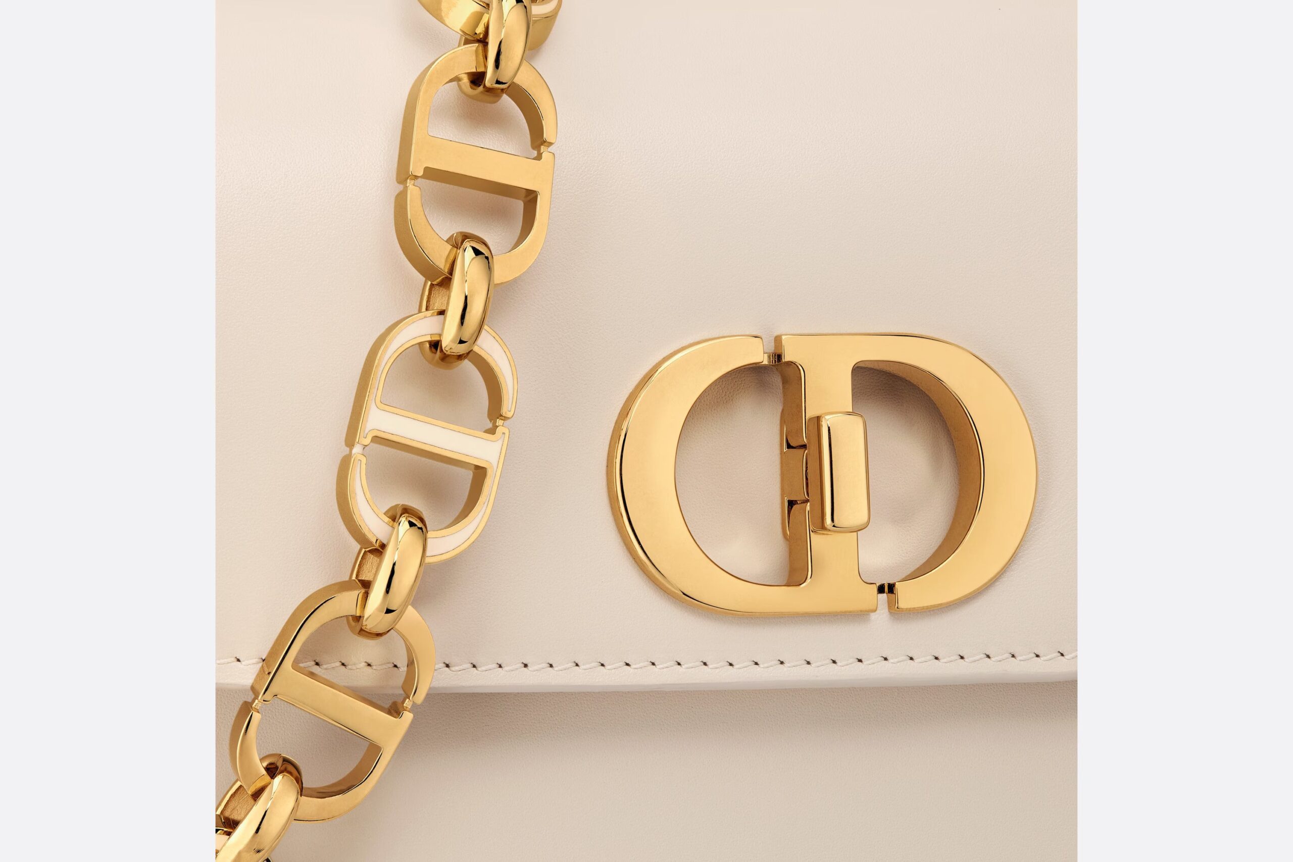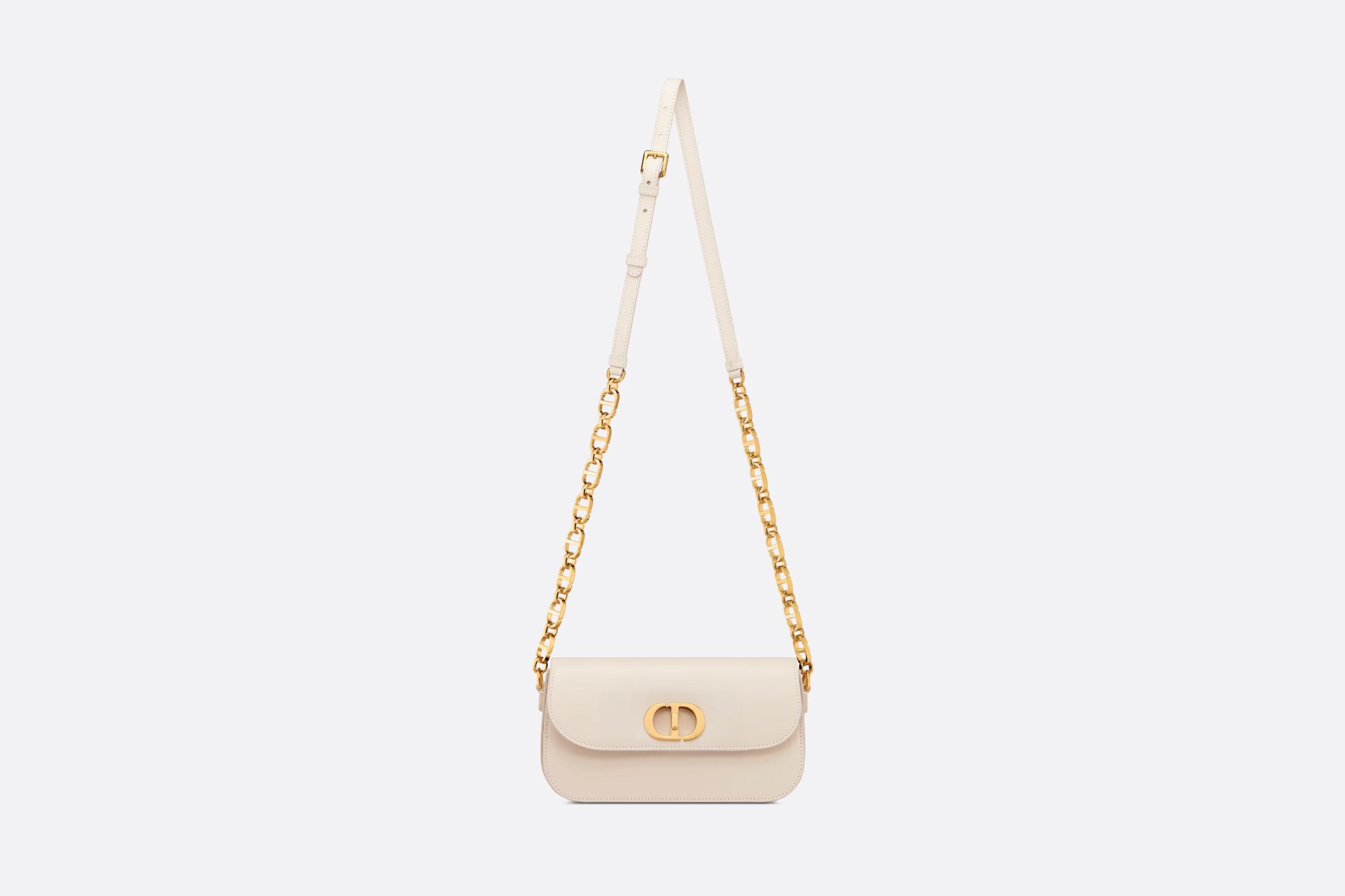 The 30 Montaigne Avenue bag enhances the hallmark line with a timeless and elegant style. Crafted in Dusty ivory box calfskin, the rounded flap with delicate curves is punctuated by an antique gold-finish metal CD clasp inspired by the seal of a Christian Dior perfume bottle. The design is completed by other details, like the 30 Montaigne signature embossed on the back and the signature chain alternating gold-finish metal and tonal enamel links that match the leather. The gusseted bag features a spacious and refined silhouette that can be carried by hand, worn over the shoulder or crossbody.