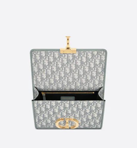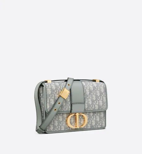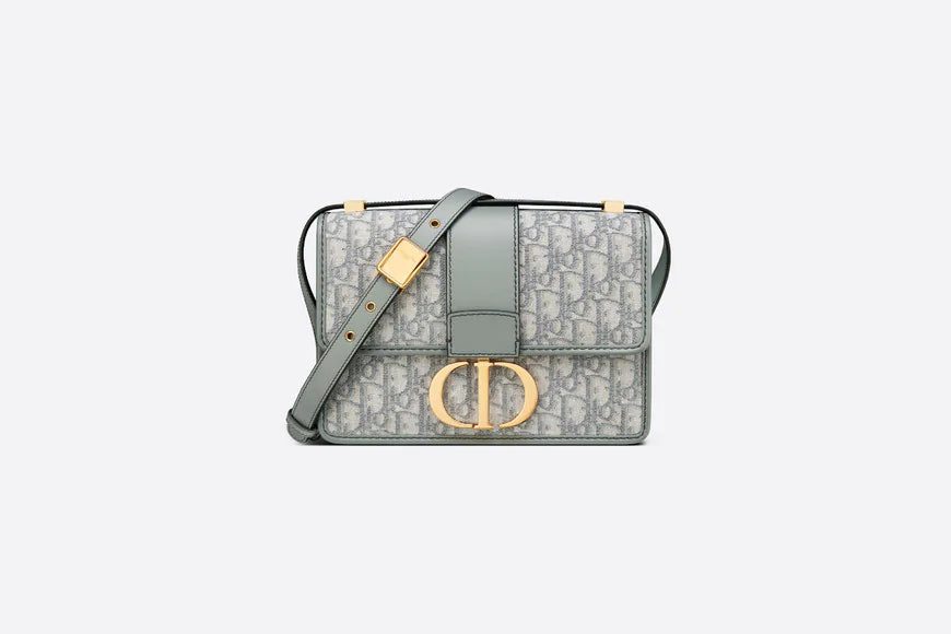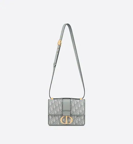 The 30 Montaigne line, inspired by the hallmark address, offers essential pieces that embody the House's iconic codes. The handbag is crafted in gray Dior Oblique jacquard for an elegant and modern design. The flap has an antique gold-finish metal 'CD' clasp, inspired by the seal of a Christian Dior perfume bottle. Other details, like the embossed '30 MONTAIGNE' signature at the back and the military-inspired buckle highlight the streamlined design. The style has an adjustable leather shoulder strap and can be carried by hand, worn over the shoulder or crossbody.