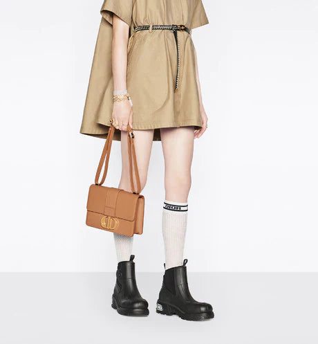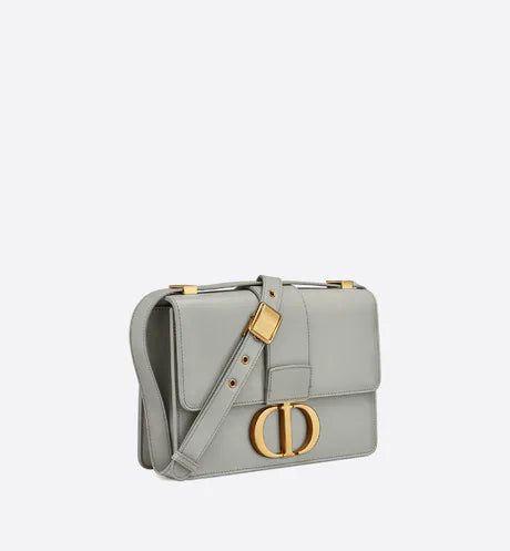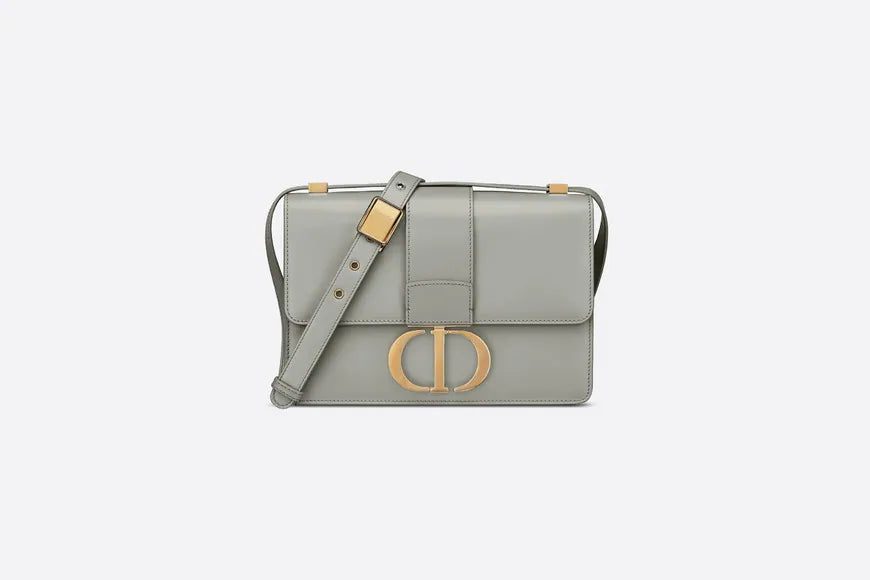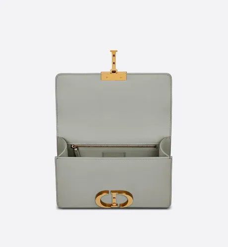 The 30 Montaigne line, inspired by the hallmark address, offers essential pieces that embody the House's iconic codes. The handbag is crafted in gray box calfskin for an elegant and modern design. The flap has an antique gold-finish metal 'CD' clasp, inspired by the seal of a Christian Dior perfume bottle. Other details, like the embossed '30 MONTAIGNE' signature at the back highlight the streamlined design. The style has an adjustable leather shoulder strap and can be carried by hand, worn over the shoulder or crossbody.