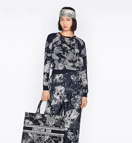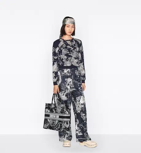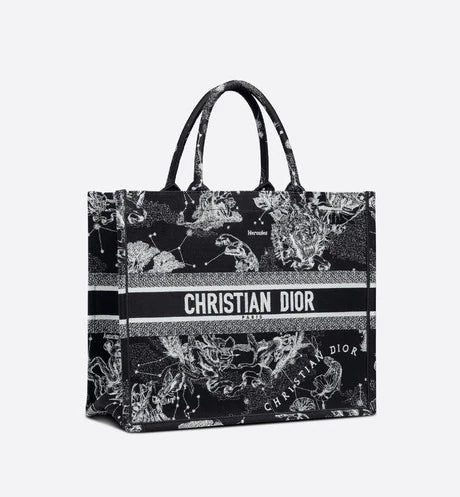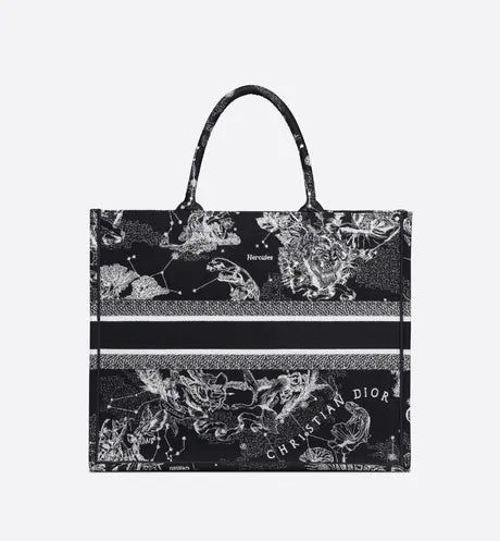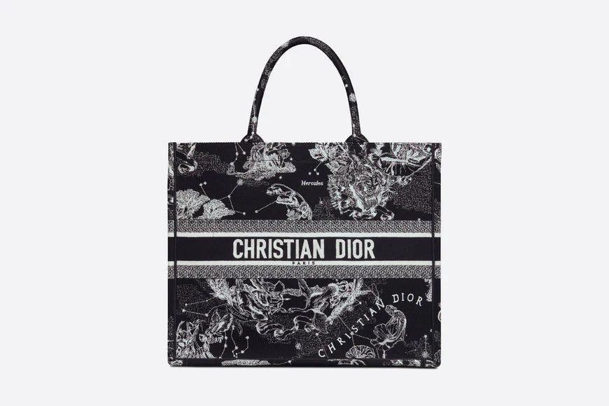 Introduced by Maria Grazia Chiuri, Creative Director of Christian Dior, the Dior Book Tote has become a staple of the Dior aesthetic. Designed to hold all the daily essentials, the style is fully embroidered with a black Toile de Jouy Zodiac motif, a variation of the House's hallmark pattern that honors Mr. Dior's passion for astrology. Adorned with the 'CHRISTIAN DIOR PARIS' signature on the front, the large tote exemplifies the House's signature savoir-faire and may be carried by hand or worn over the shoulder.