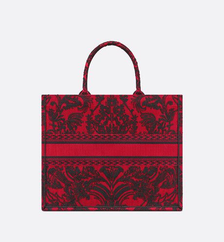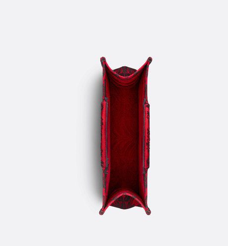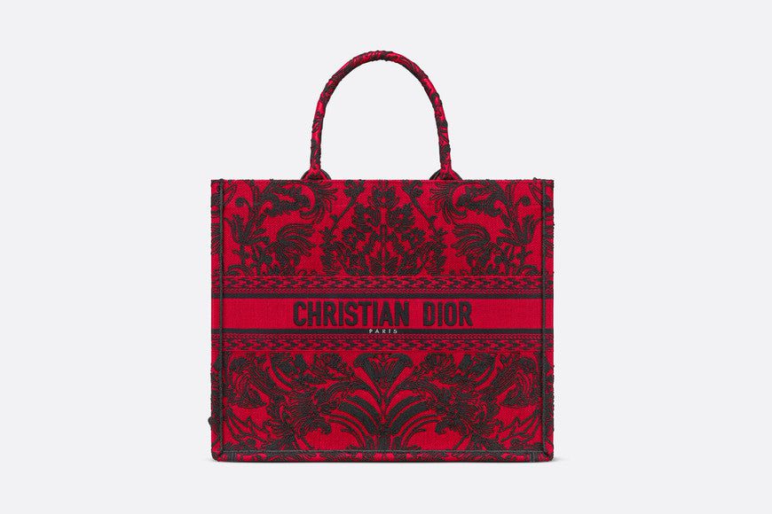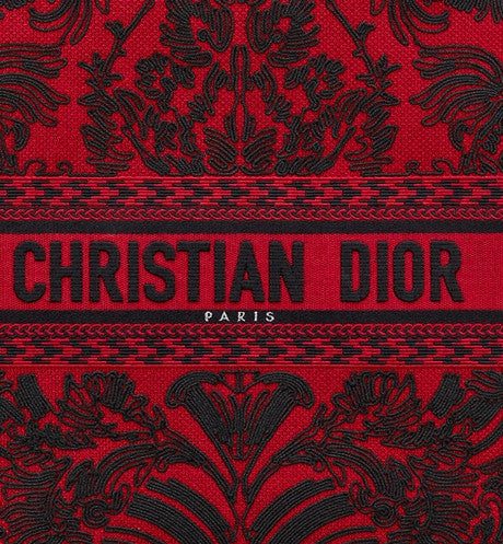 Introduced by Maria Grazia Chiuri, Dior's Creative Director, the Dior Book Tote has become a staple of the Dior aesthetic. Designed to hold all the daily essentials, the style is fully embroidered in a red and black Ornamental motif with a Cornely effect, inspired by Andalusian baroque in a graphic spirit. The design is adorned with the 'CHRISTIAN DIOR PARIS' signature on the front and exemplifies the House's signature savoir-faire. The large tote may be carried by hand or worn over the shoulder.