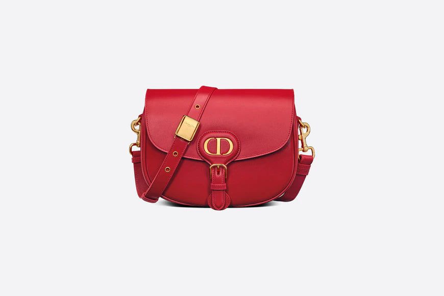 The Dior Bobby bag is a hobo style showcasing sophisticated lines and harmonious proportions. The scarlet red design is crafted from box calfskin with a suede calfskin interior for added suppleness and boasts antique gold-finish metal hardware. Its sliding, removable and adjustable shoulder strap has a military-inspired buckle, and allows the medium style to be carried by hand, worn over the shoulder or crossbody.