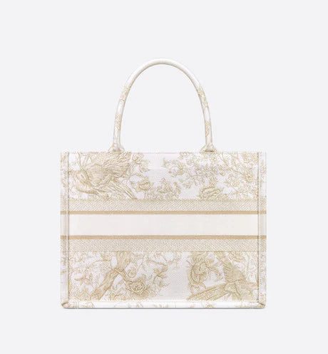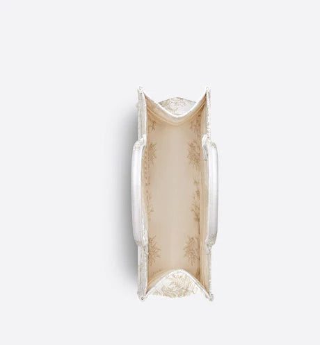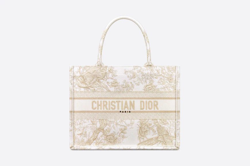 Introduced by Maria Grazia Chiuri, Dior's Creative Director, the Dior Book Tote has become a staple of the Dior aesthetic. Designed to hold all the daily essentials, the style is fully embroidered with the Dior Jardin d'Hiver motif enhanced by gold-tone metallic thread, showcasing a poetic and exotic interpretation of Mr. Dior's wall tapestries. Adorned with the 'CHRISTIAN DIOR PARIS' signature on the front, the medium tote exemplifies the House's signature savoir-faire and may be carried by hand or worn over the shoulder.