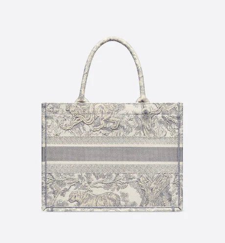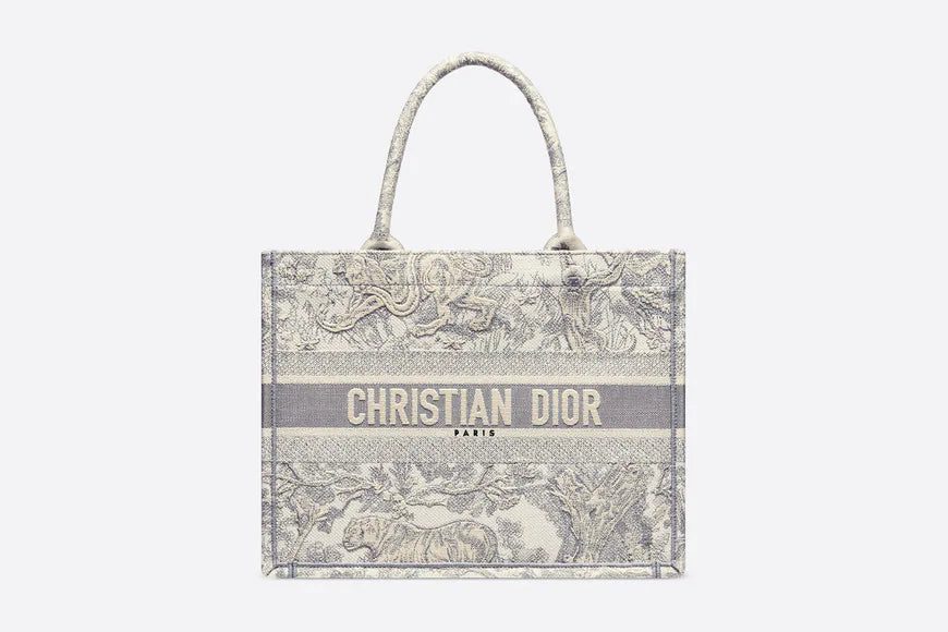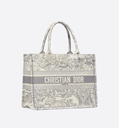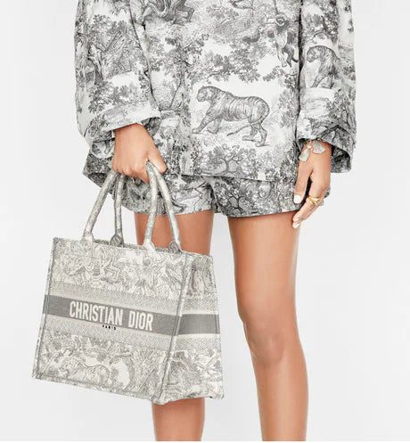 Introduced by Maria Grazia Chiuri, Creative Director of Christian Dior, the Dior Book Tote has become a staple of the Dior aesthetic. Designed to hold all the daily essentials, the style is fully embroidered with a gray Toile de Jouy motif. Adorned with the 'CHRISTIAN DIOR PARIS' signature on the front, the medium tote exemplifies the House's signature savoir-faire and may be carried by hand or worn over the shoulder.