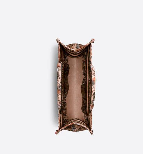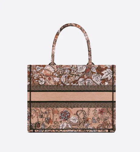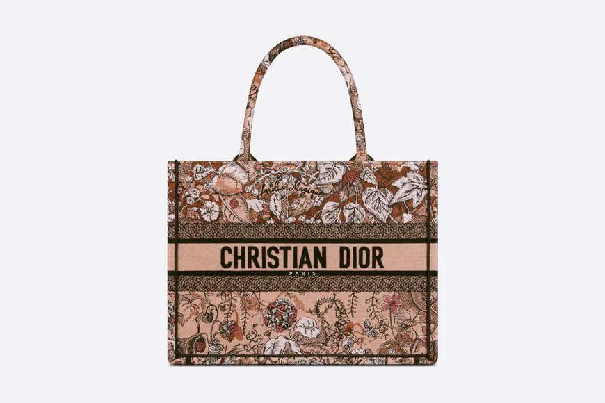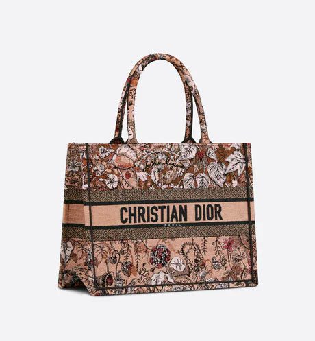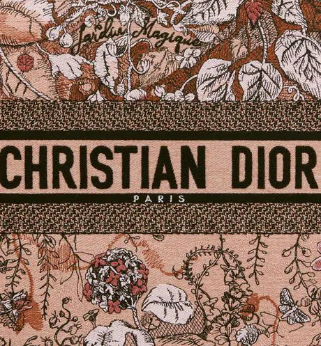Introduced by Maria Grazia Chiuri, Dior's Creative Director, the Dior Book Tote has become a staple of the Dior aesthetic. Designed to hold all the daily essentials, the style is fully embroidered with the powder pink Dior Jardin Magique motif, a bucolic and enchanting creation inspired by a magical world. The design is adorned with the 'CHRISTIAN DIOR PARIS' signature on the front and exemplifies the House's signature savoir-faire. The medium tote may be carried by hand or worn over the shoulder.