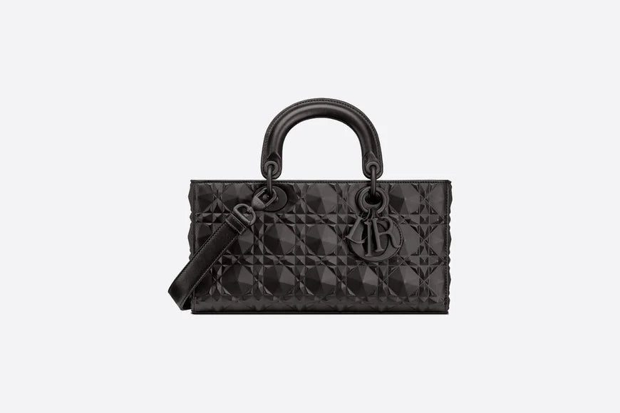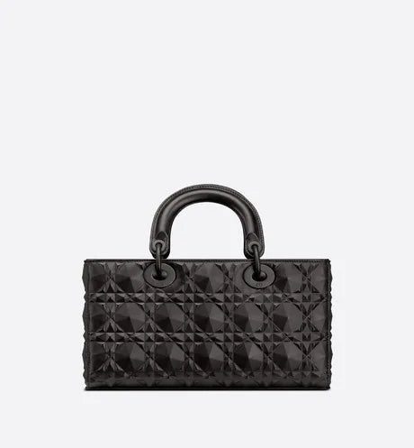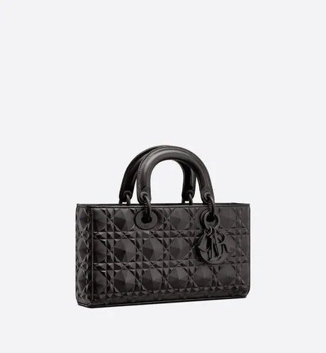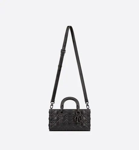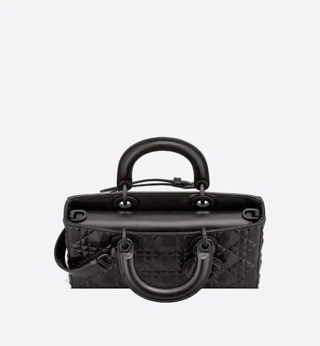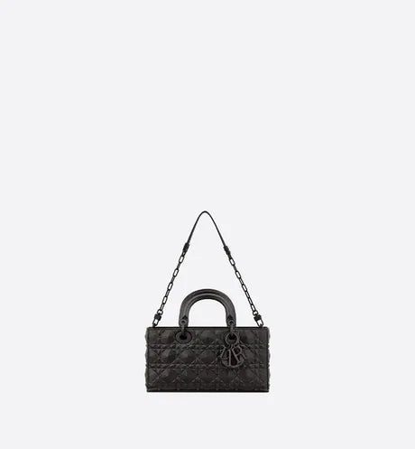 The Lady D-Joy bag captures the House's vision of elegance and beauty by showcasing the iconic streamlined aesthetic of the Lady Dior line. Crafted in Cannage calfskin featuring a black Diamond motif, the refined and timeless style is enhanced by tonal matte metal 'D.I.O.R.' charms elegantly embellishing its silhouette. Featuring one removable chain shoulder strap and another adjustable and removable leather shoulder strap, the medium Lady D-Joy bag can be carried by hand or worn crossbody as a daily companion.