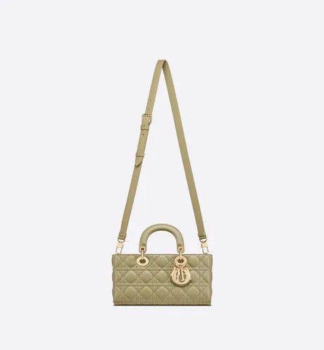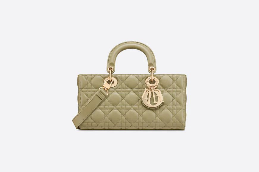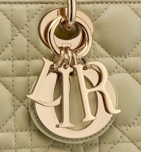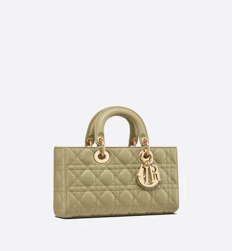 The Lady D-Joy bag captures the House's vision of elegance and beauty by showcasing the iconic streamlined aesthetic of the Lady Dior line. Crafted in sage green lambskin with Cannage stitching, the refined and timeless style is enhanced by pale gold-finish metal 'D.I.O.R.' charms elegantly embellishing its silhouette. Featuring one removable chain shoulder strap and another adjustable and removable leather shoulder strap, the medium Lady D-Joy bag can be carried by hand, worn over the shoulder or crossbody as a daily companion.
