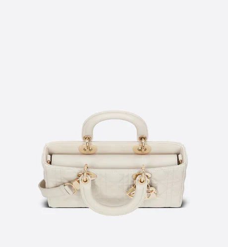 The Lady D-Joy bag captures the House's vision of elegance and beauty. Refined and sleek, this timeless style showcases the iconic streamlined aesthetic of the Lady Dior line. Crafted in latte lambskin with Cannage stitching, it is enhanced by pale gold-finish metal 'D.I.O.R.' charms embellishing its silhouette. Featuring one removable chain shoulder strap and another adjustable and removable leather shoulder strap, the medium Lady D-Joy bag can be carried by hand or worn crossbody as a daily companion.