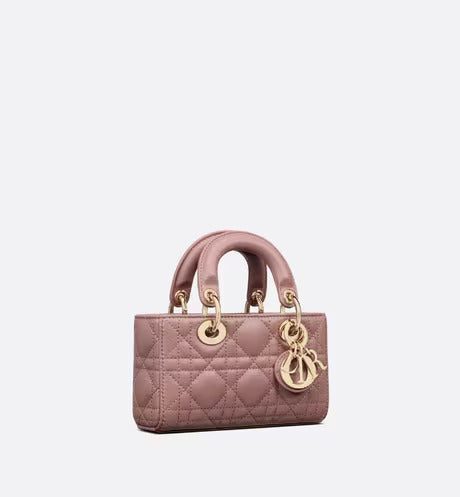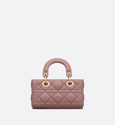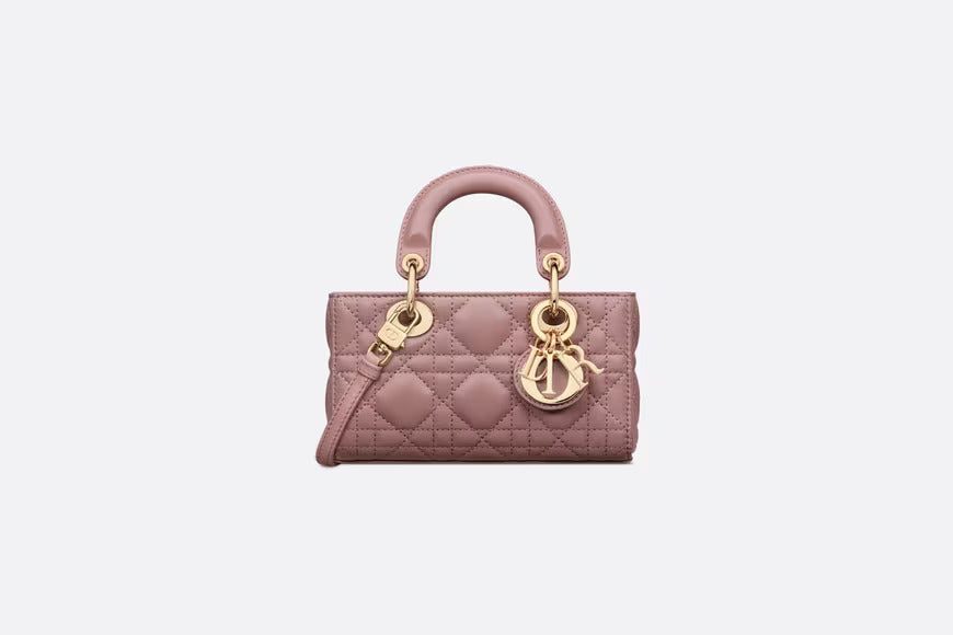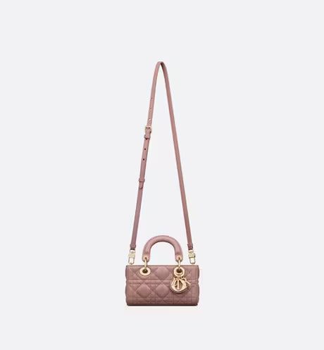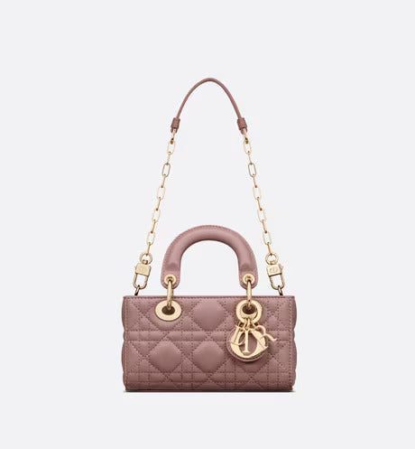 New this season, the Lady D-Joy micro bag captures the House's vision of elegance and beauty by showcasing the iconic streamlined aesthetic of the Lady Dior line. Sleek and refined, the timeless creation is crafted in peony pink lambskin with Cannage stitching and enhanced by a pale gold-finish metal 'D.I.O.R.' charm. Featuring one removable chain strap and another adjustable and removable leather strap, the Lady D-Joy micro bag can be carried by hand, worn over the shoulder or crossbody as an ideal day or evening companion.