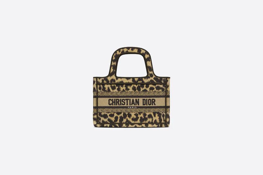 The Dior Book Tote, as imagined by Maria Grazia Chiuri, has become an essential item of the Dior aesthetic. The silhouette is fully embroidered with the beige multicolor Mizza motif, a staple of the collection and inspired by a leopard pattern from the House archives. A prime example of Dior's savoir-faire, the miniature bag may be carried by hand and can be paired with other Mizza creations.