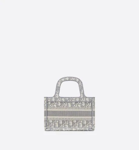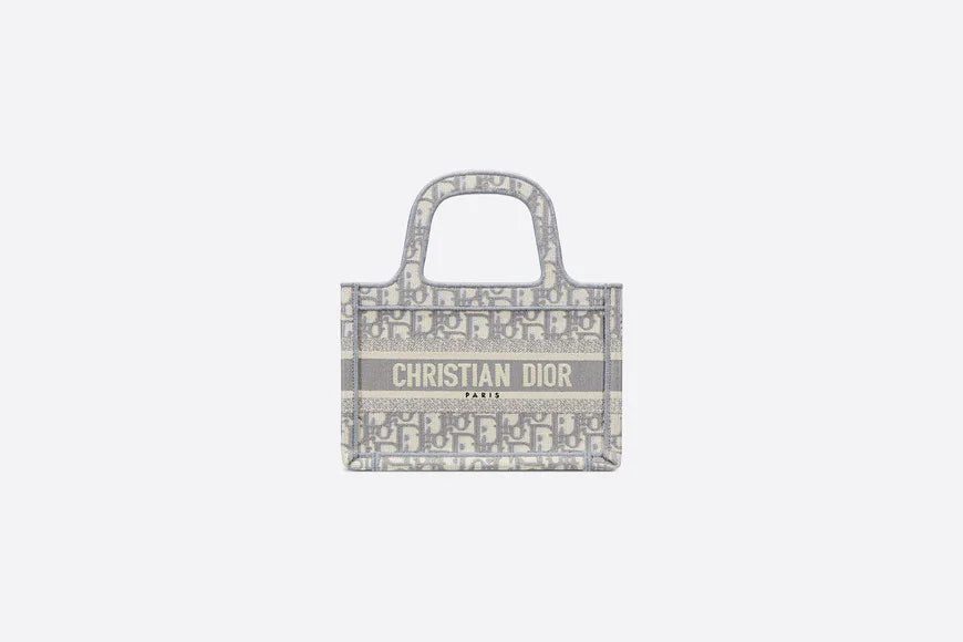 The Dior Book Tote, as imagined by Maria Grazia Chiuri, has become an essential item of the Dior aesthetic. The silhouette is fully embroidered with the House's hallmark gray Dior Oblique motif. A prime example of Dior savoir-faire, the miniature bag may be carried by hand and can be paired with other Dior Oblique creations.