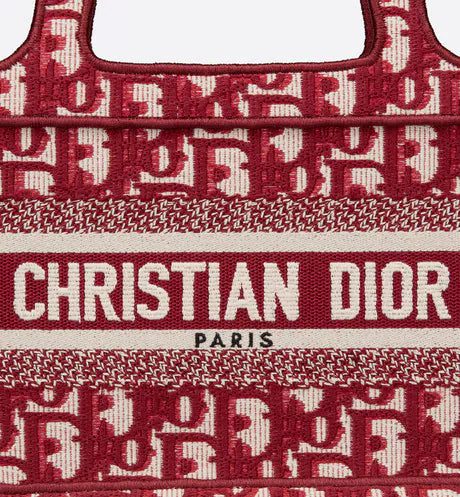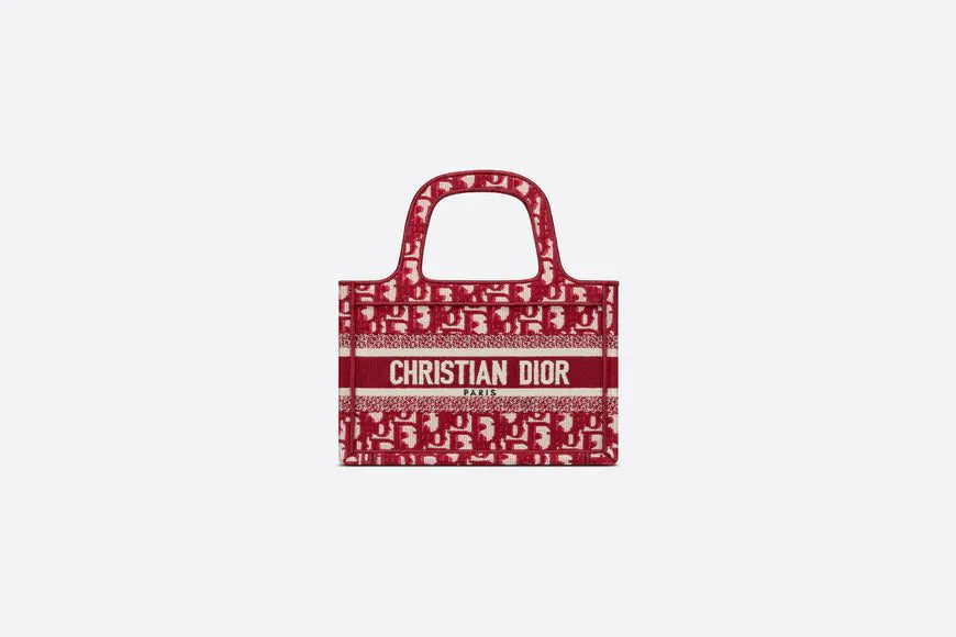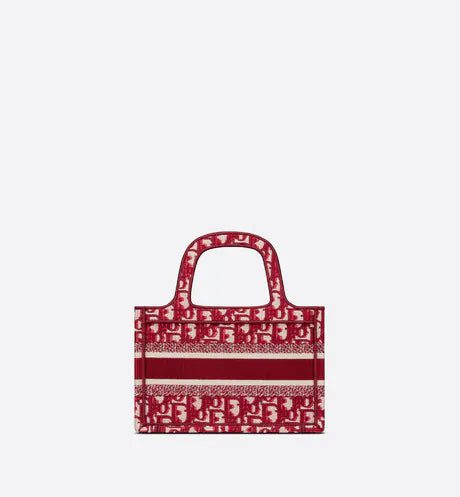 The Dior Book Tote, as imagined by Maria Grazia Chiuri, has become an essential item of the Dior aesthetic. The silhouette is fully embroidered with the House's hallmark burgundy Dior Oblique motif. A prime example of Dior savoir-faire, the miniature bag may be carried by hand and can be paired with other Dior Oblique creations.