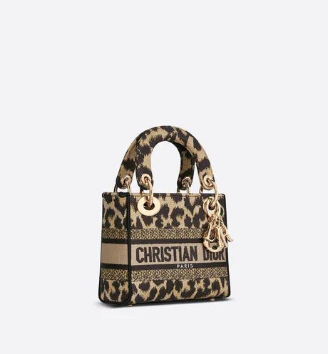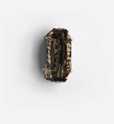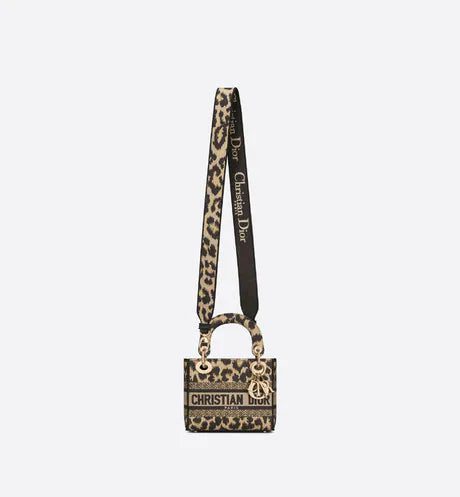 The Lady D-Lite bag combines classic elegance with House modernity. The style is fully embroidered with a beige multicolor Mizza motif, inspired by the House archives. The front features a 'CHRISTIAN DIOR PARIS' signature while the 'D.I.O.R.' charms in pale gold-finish metal further enhance the silhouette. Equipped with a wide, reversible and removable embroidered shoulder strap, the miniature Lady D-Lite bag can be carried by hand or worn crossbody.