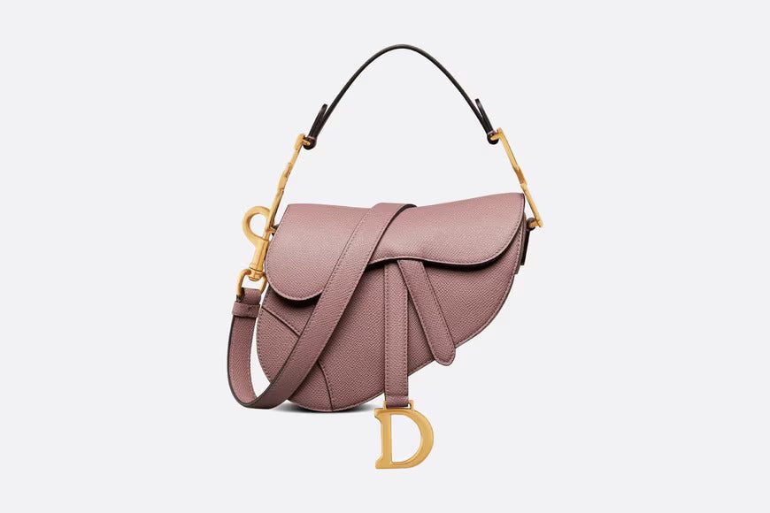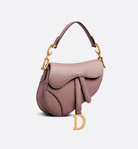Maria Grazia Chiuri brings a fresh update to the iconic Saddle bag. Crafted in peony pink grained calfskin, the legendary design presents a Saddle flap with a magnetic D stirrup clasp, as well as an antique gold-finish metal CD signature on either side of the strap. Featuring a thin, adjustable and removable shoulder strap, the miniature Saddle bag may be carried by hand, worn over the shoulder or crossbody.