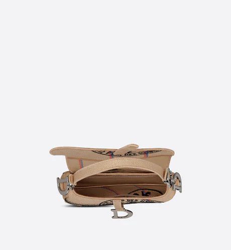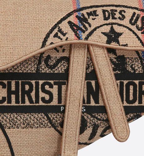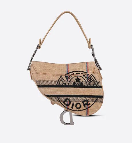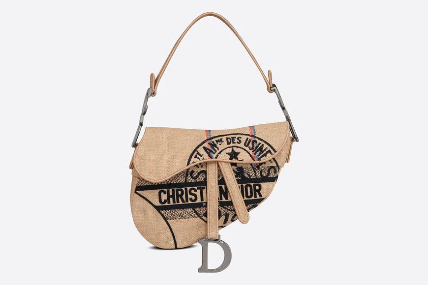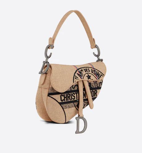 Maria Grazia Chiuri has updated the iconic Saddle bag in beige jute canvas embroidered with the 'L'Union Fait la Force' motto, inspired by the atelier's jute bags and reaffirming the participative dimension dear to Maria Grazia Chiuri. This legendary design features a Saddle flap with a magnetic 'D' stirrup clasp, as well as the ruthenium-finish metal 'CD' signature on either side of the handle. This style can be carried by hand or on the shoulder and can be personalized with different shoulder straps.