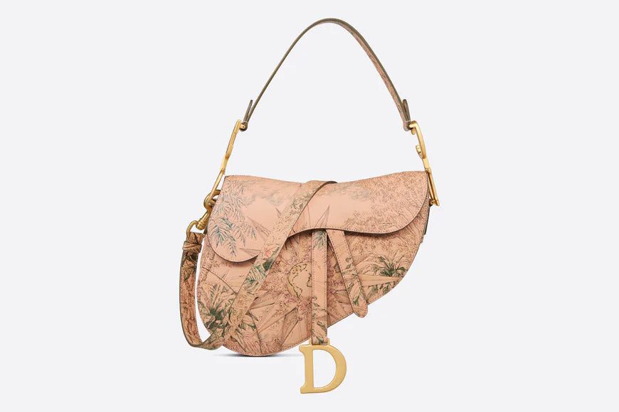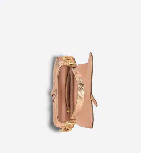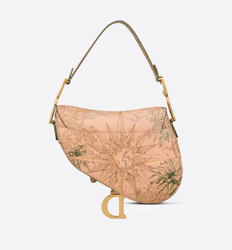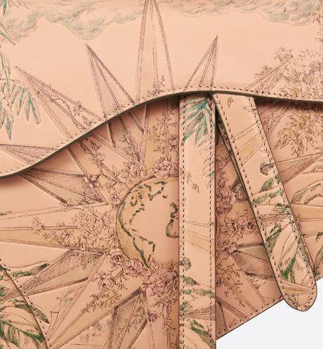 Maria Grazia Chiuri brings a fresh update to the iconic Saddle bag. Crafted in copper-colored Sbalzo calfskin, it is sculpted and hand-painted with the Rêve d'Infini motif by Pietro Ruffo, offering a dreamlike new take on Christian Dior's beloved star symbol and essential House code. The legendary design features a Saddle flap with a magnetic D stirrup clasp, as well as an antique gold-finish metal CD signature on either side of the strap. Equipped with a thin, adjustable and removable shoulder strap, the Saddle bag may be carried by hand, worn over the shoulder or crossbody.