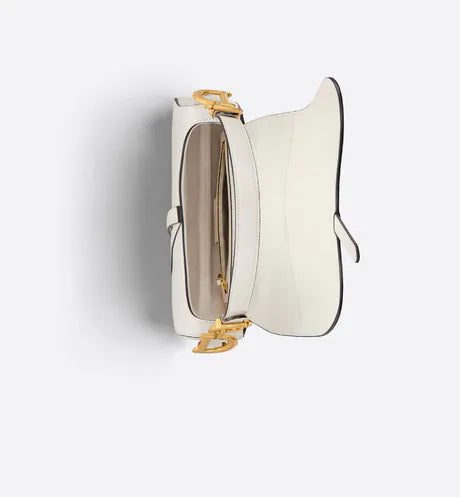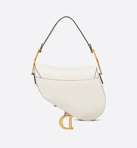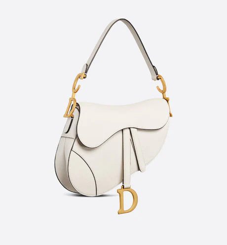 Maria Grazia Chiuri brings a fresh update to the iconic Saddle bag. Crafted in latte grained calfskin, the legendary design presents a Saddle flap with a magnetic D stirrup clasp, as well as an antique gold-finish metal CD signature on either side of the strap. Featuring a thin, adjustable and removable shoulder strap, the Saddle bag may be carried by hand, worn over the shoulder or crossbody.