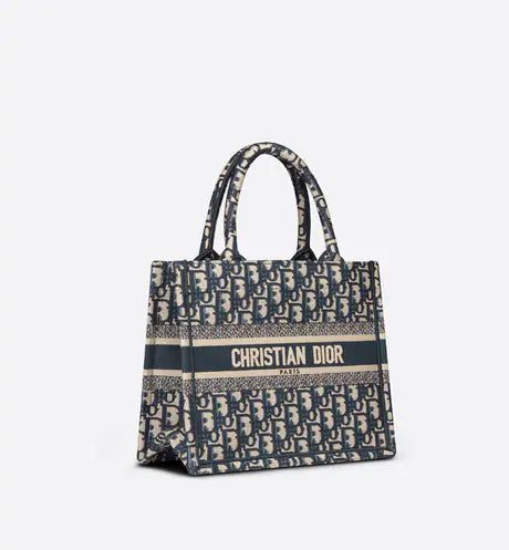 Introduced by Maria Grazia Chiuri, Creative Director of Christian Dior, the Dior Book Tote has become a staple of the Dior aesthetic. Designed to hold all the daily essentials, the style is fully embroidered with a blue Dior Oblique motif. Adorned with the 'CHRISTIAN DIOR PARIS' signature on the front, the small tote exemplifies the House's signature savoir-faire and may be carried by hand.