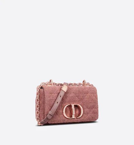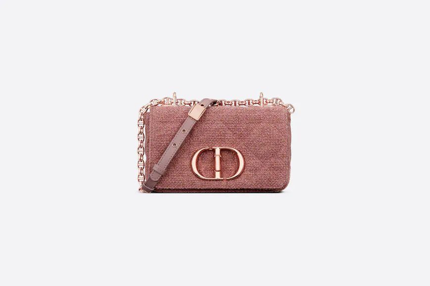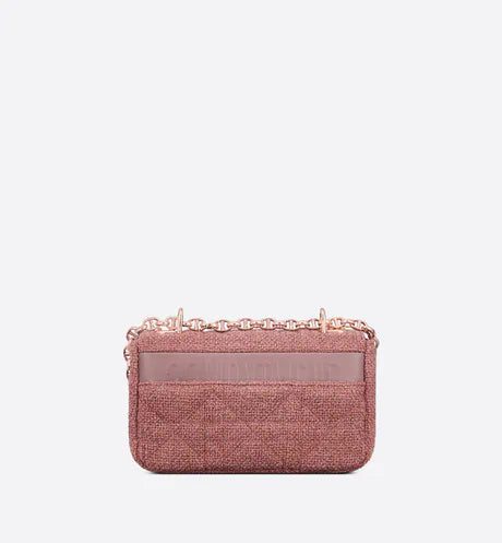 The Dior Caro bag combines modernity with timeless elegance. The design is crafted in purple linen with a Macrocannage motif that is distinguished by a textured effect giving it depth. A flap is adorned with an antique rose gold-finish metal 'CD' twist clasp, inspired by the seal of a Christian Dior perfume bottle. The detachable chain strap with 'CD' signature links allows the small bag to be carried by hand, worn over the shoulder or crossbody. It may also be replaced by one of the House's wide embroidered straps for day or evening attire.