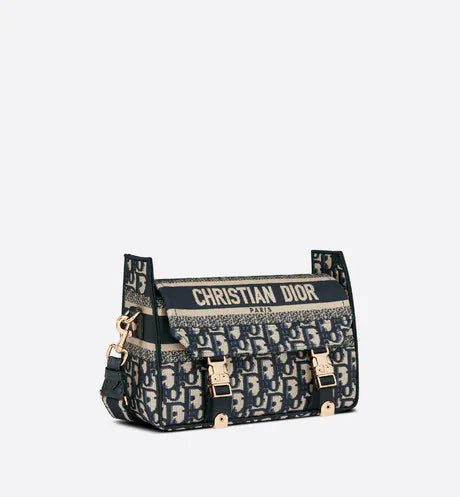 Maria Grazia Chiuri has updated the classic messenger bag by adding signature Dior details for a relaxed and modern look. Fully embroidered with the blue Dior Oblique motif, the bag is enhanced by a 'CHRISTIAN DIOR PARIS' signature flap, as well as sportswear-inspired 'CD' buckles. Equipped with an adjustable and removable shoulder strap, the small, compact messenger bag can be worn over the shoulder or crossbody, and will make an ideal urban companion.