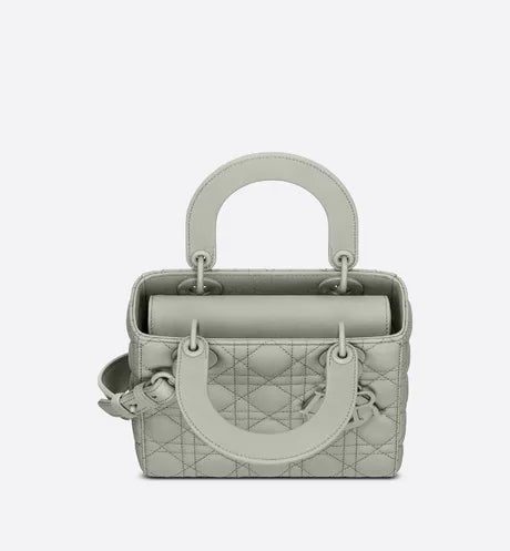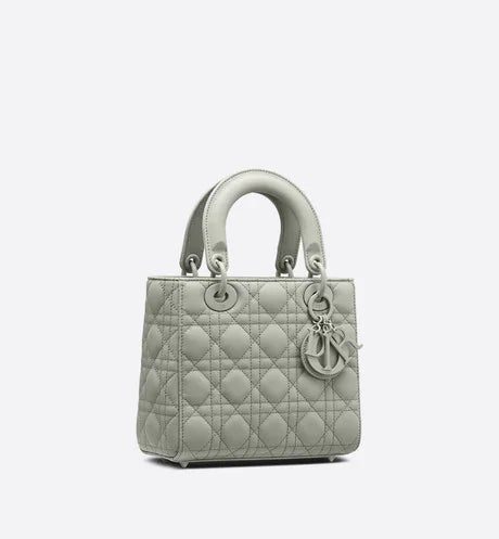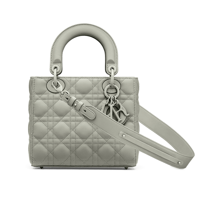 The Lady Dior My ABCDior bag epitomizes Dior's vision of elegance and beauty. Sleek and refined, the timeless style is crafted in gray ultramatte calfskin with Cannage stitching, creating the instantly recognizable quilted texture. Tonal metal 'D.I.O.R.' charms further embellish its silhouette with an elegant allure. Featuring a shoulder strap that can be personalized with badges, the small, unique design may be carried by hand or worn crossbody.