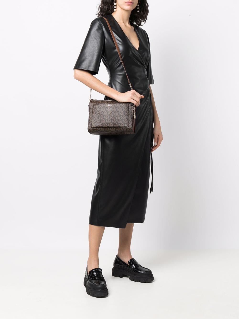 brown calf leather monogram pattern slip pocket to the front charm detail adjustable detachable shoulder strap top zip fastening logo-print lining main compartment internal zip pocket internal logo patch