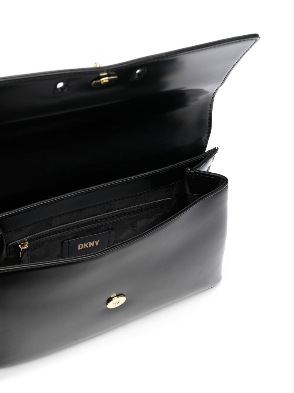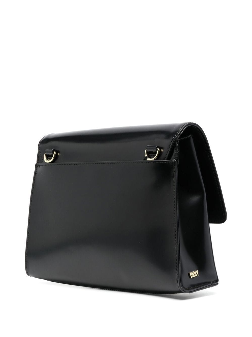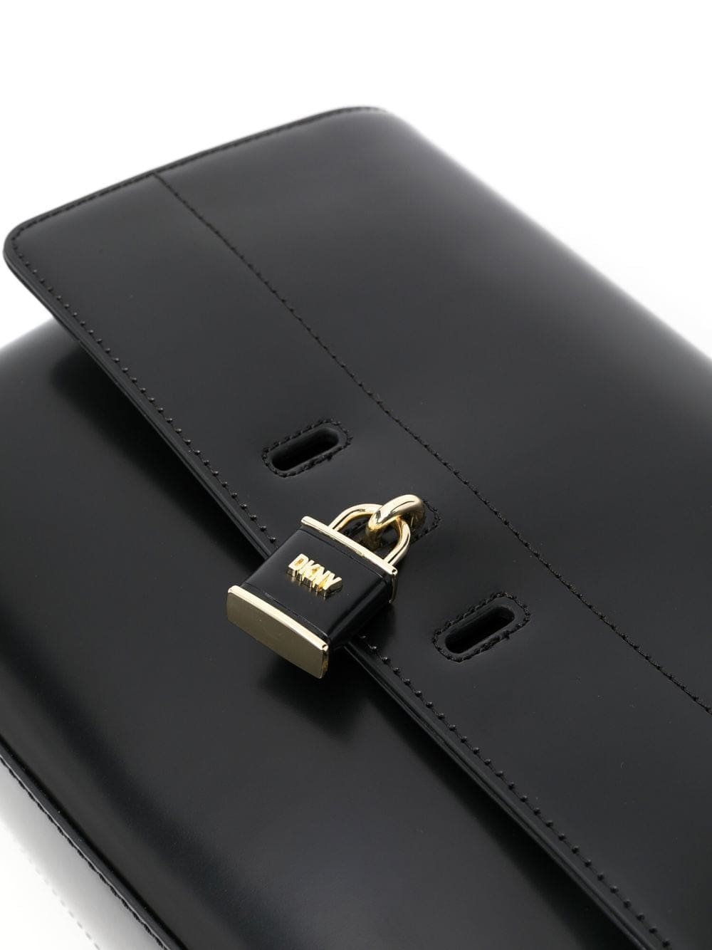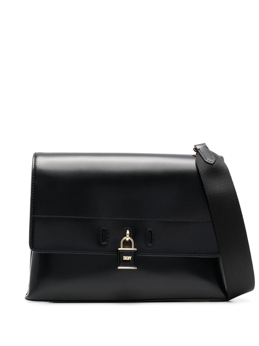 black calf leather polished finish padlock detail gold-tone logo lettering foldover top with magnetic fastening adjustable detachable shoulder strap main compartment internal zip-fastening pocket
